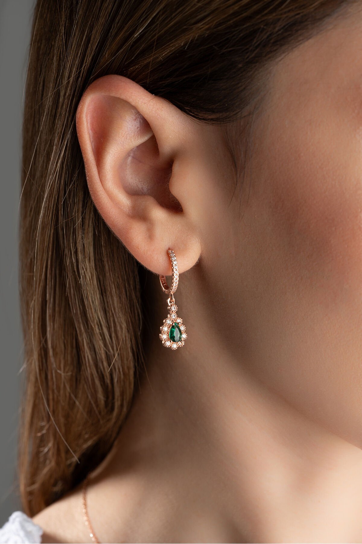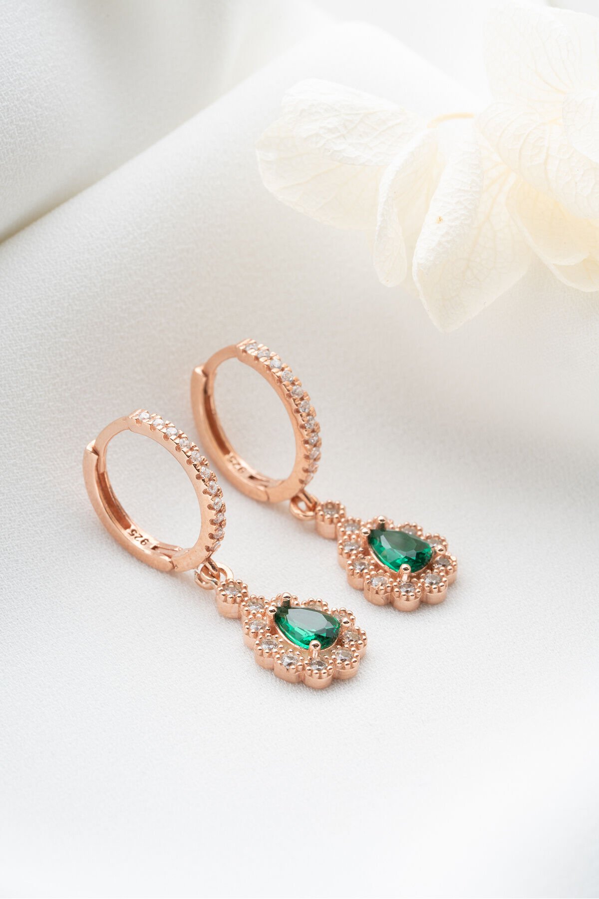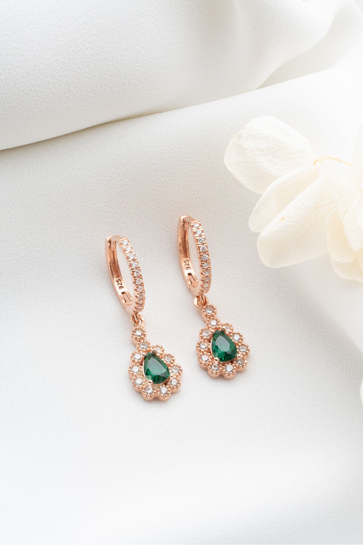925 Ayar Gümüş Zümrüt Yeşili Damla Küpe