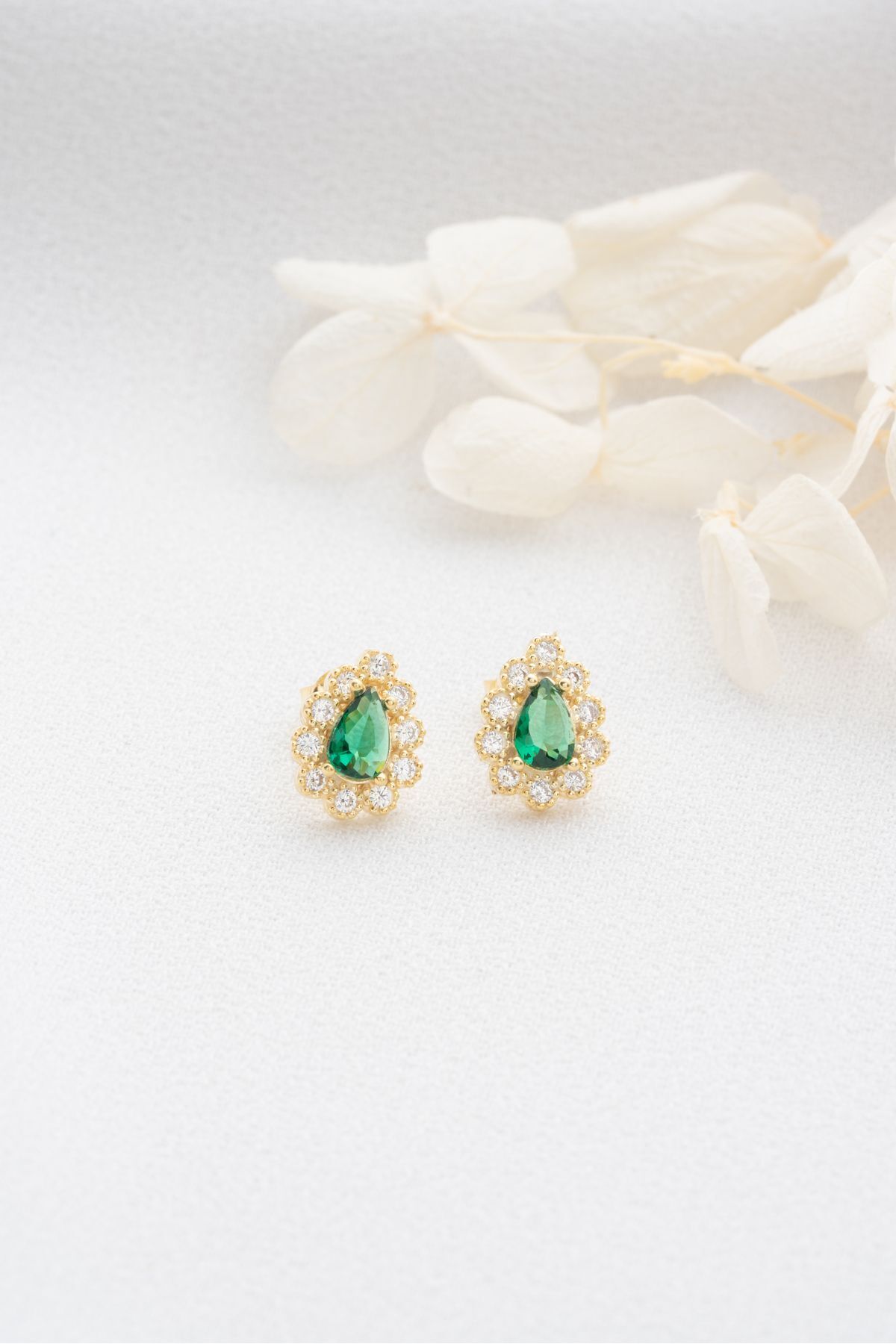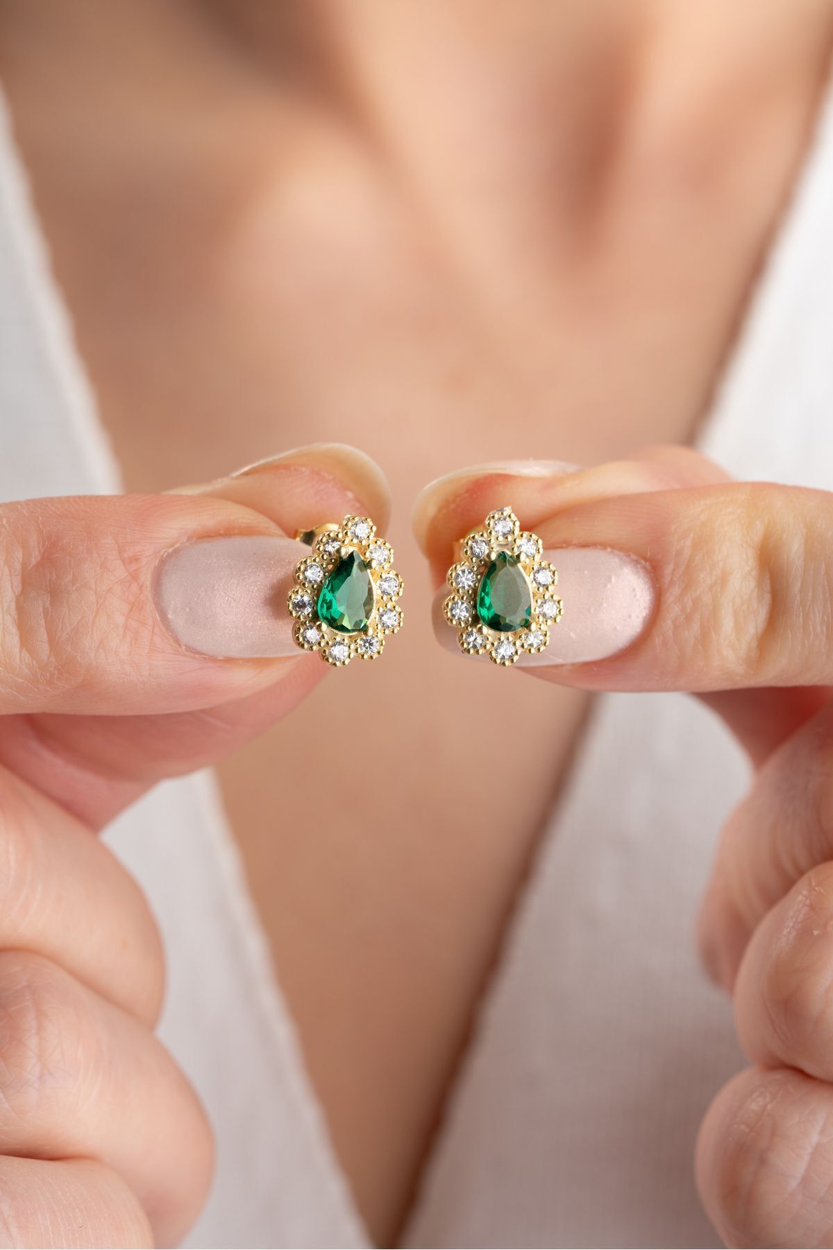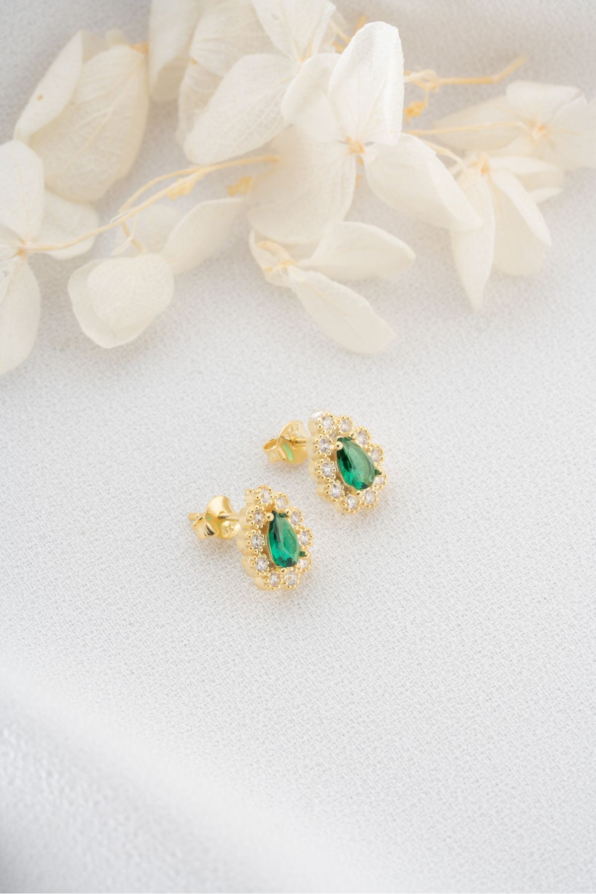 925 Ayar Gümüş Zümrüt Yeşili Minik Damla Küpe