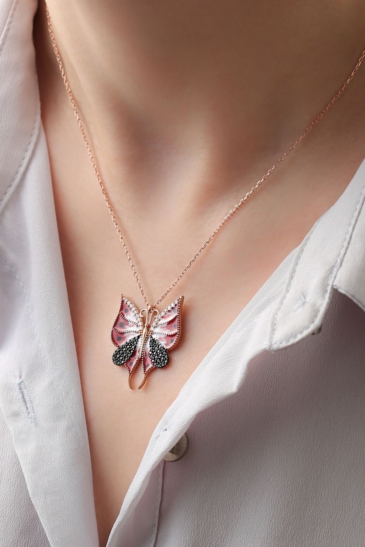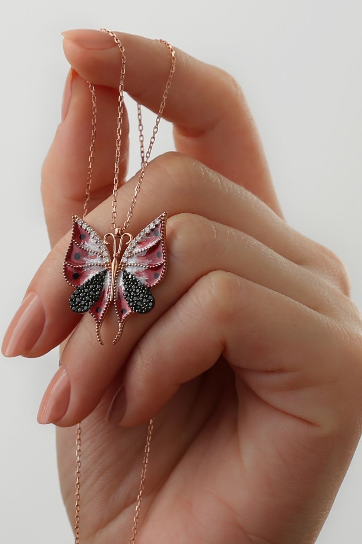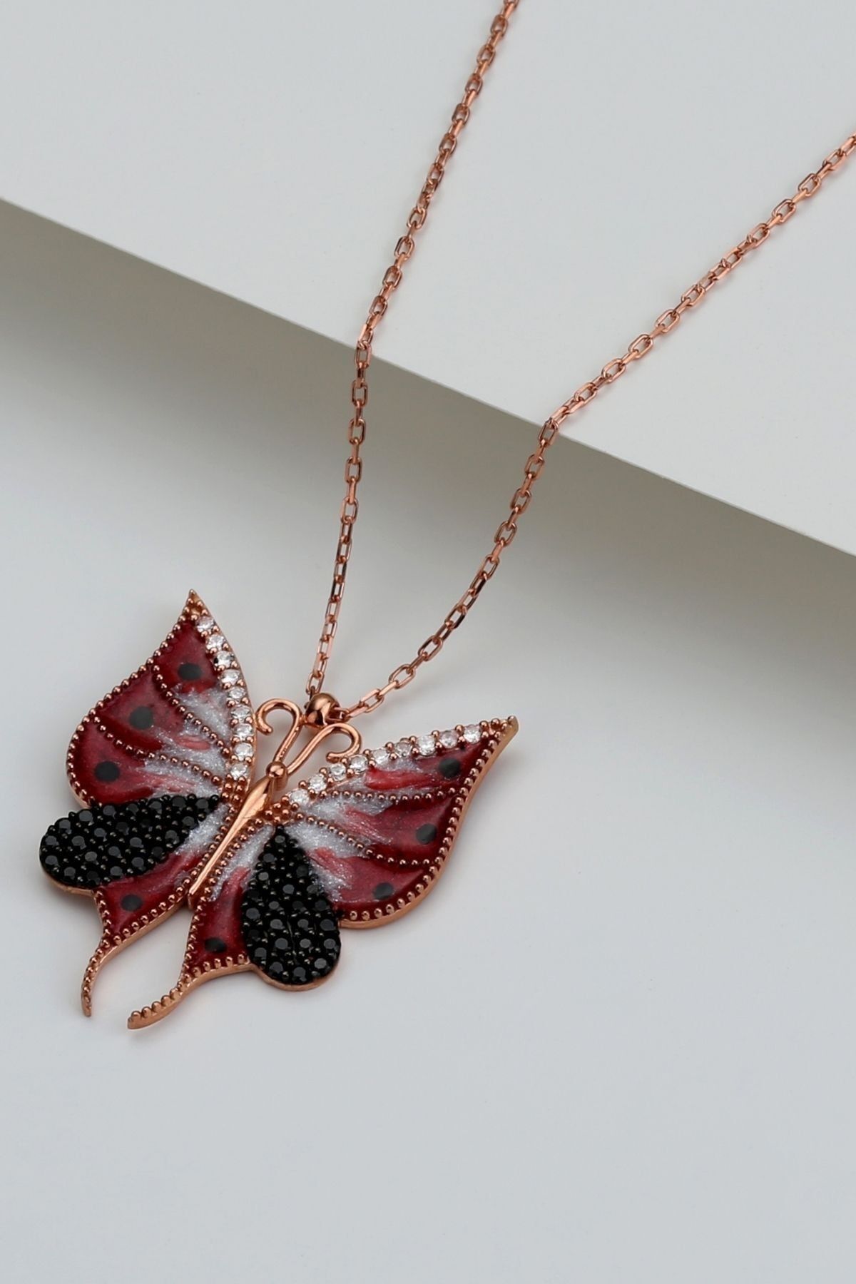 925 Ayar Kırmızı Kelebek Gümüş Kolye