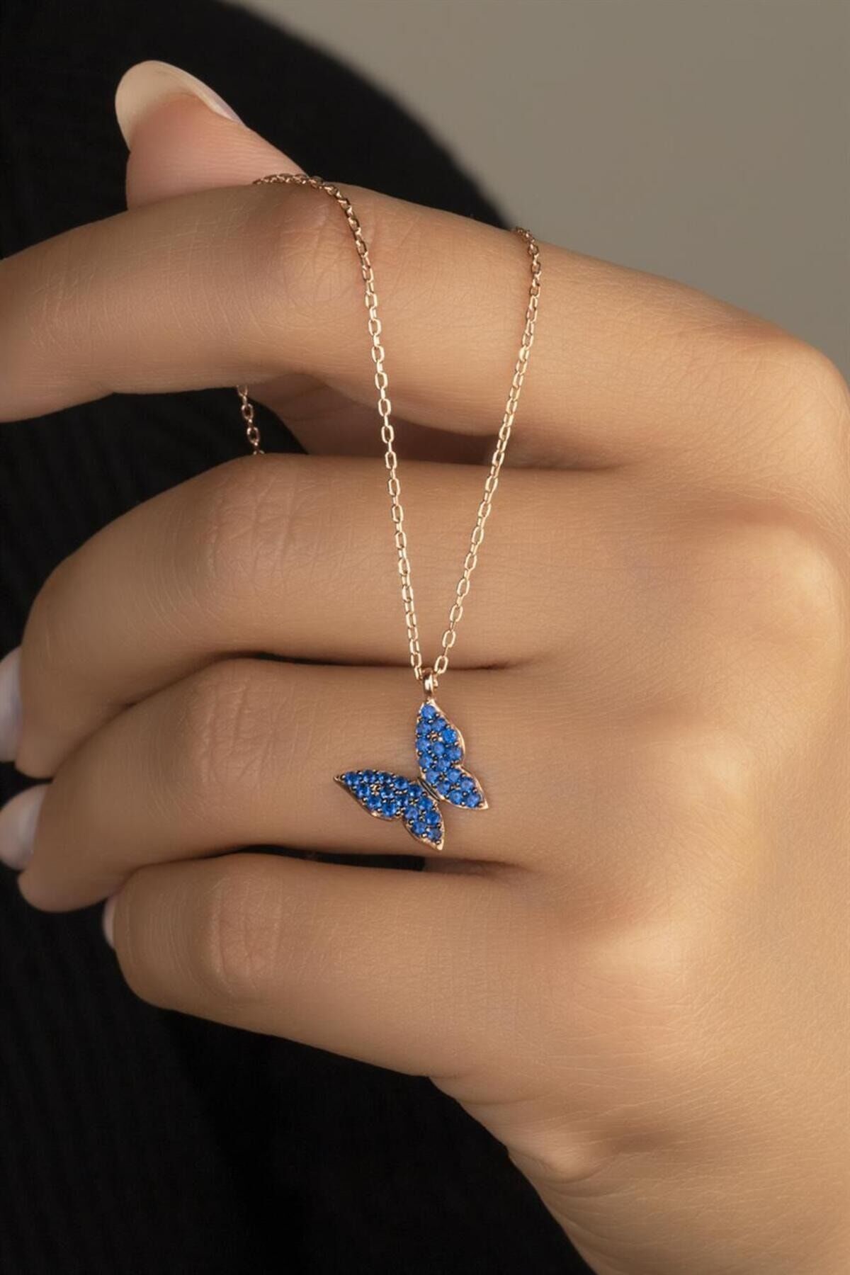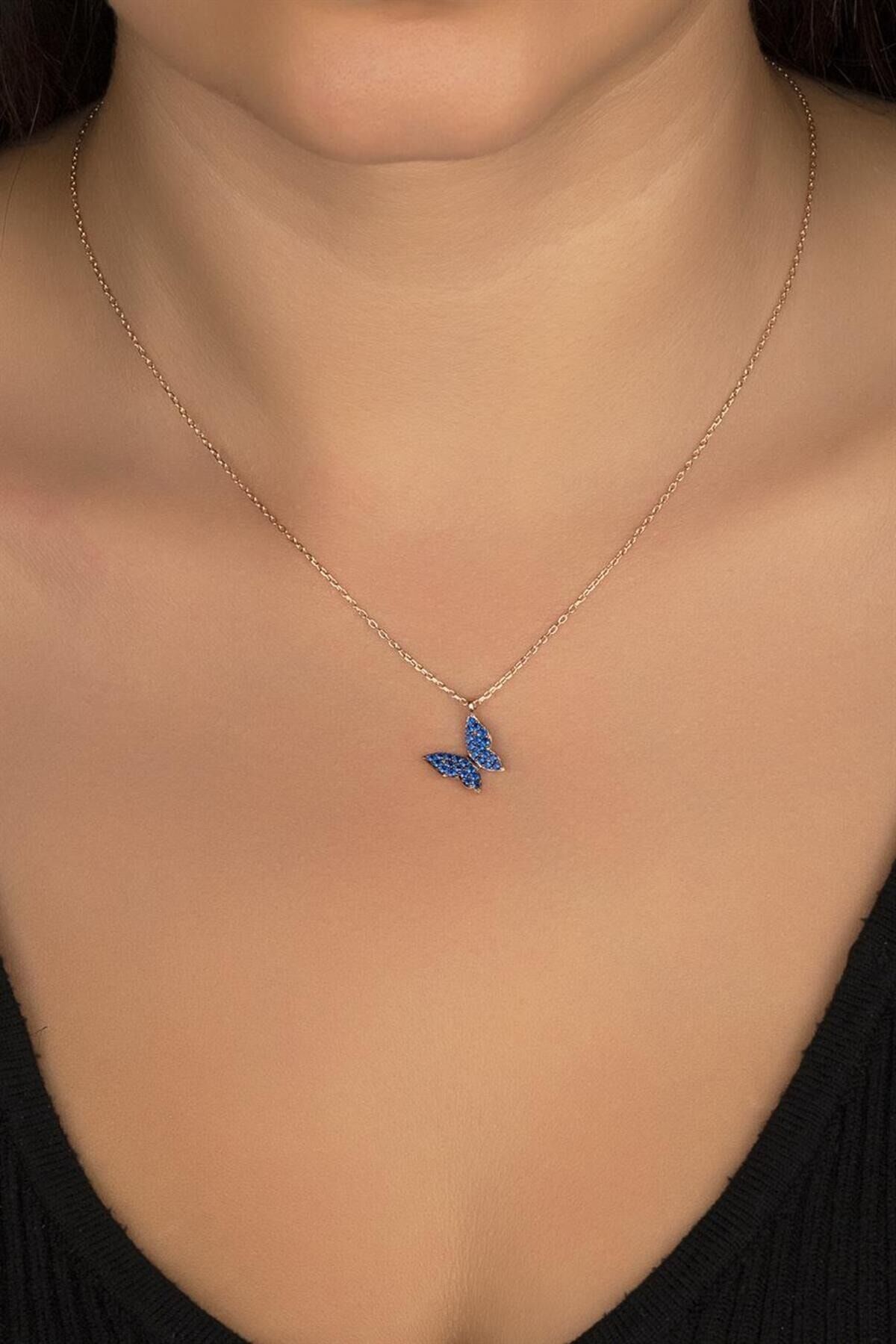 925 Ayar Mavi Kelebek Gümüş Kolye