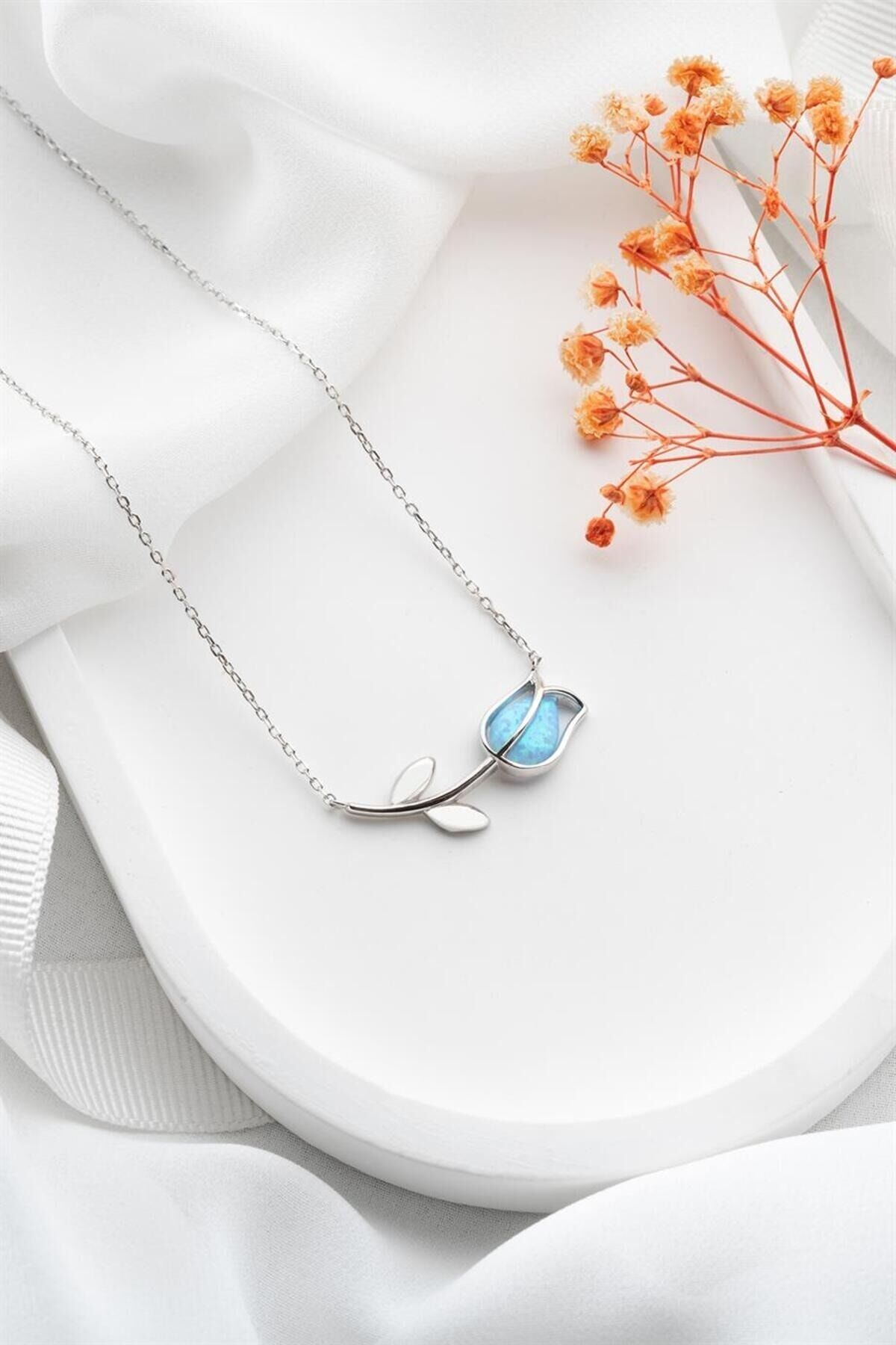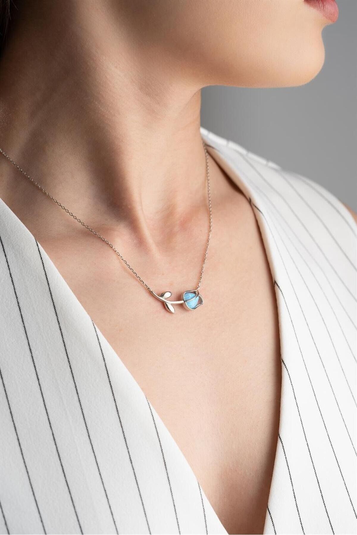 925 Ayar Mavi Lale Gümüş Kolye