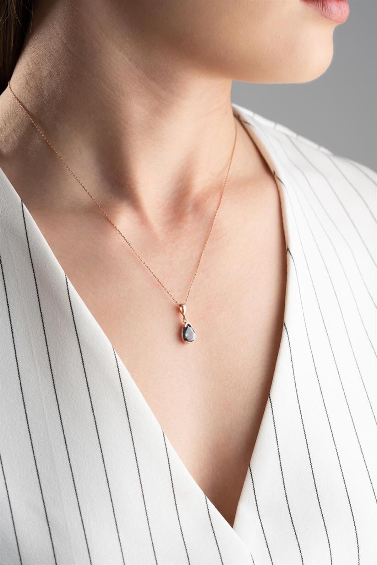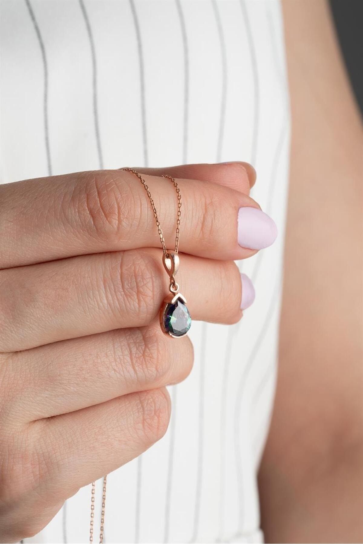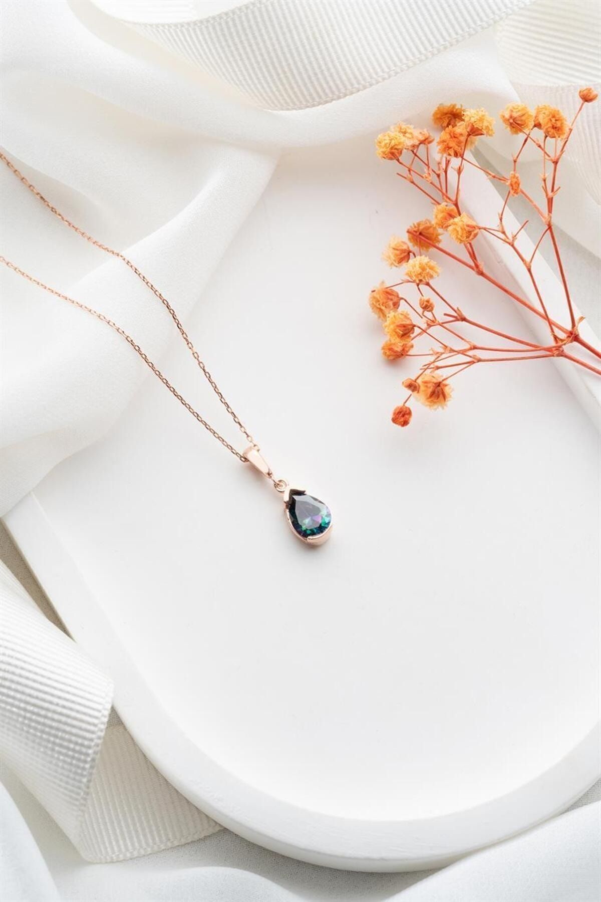 925 Ayar Mistik Topaz Damla Gümüş Kolye