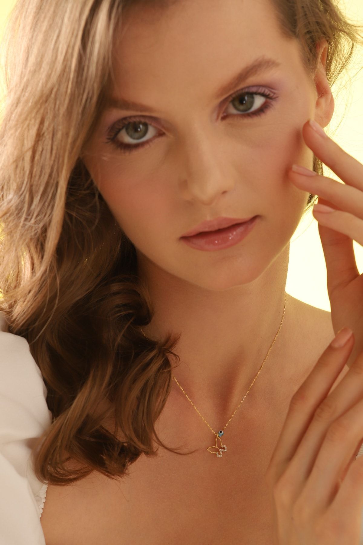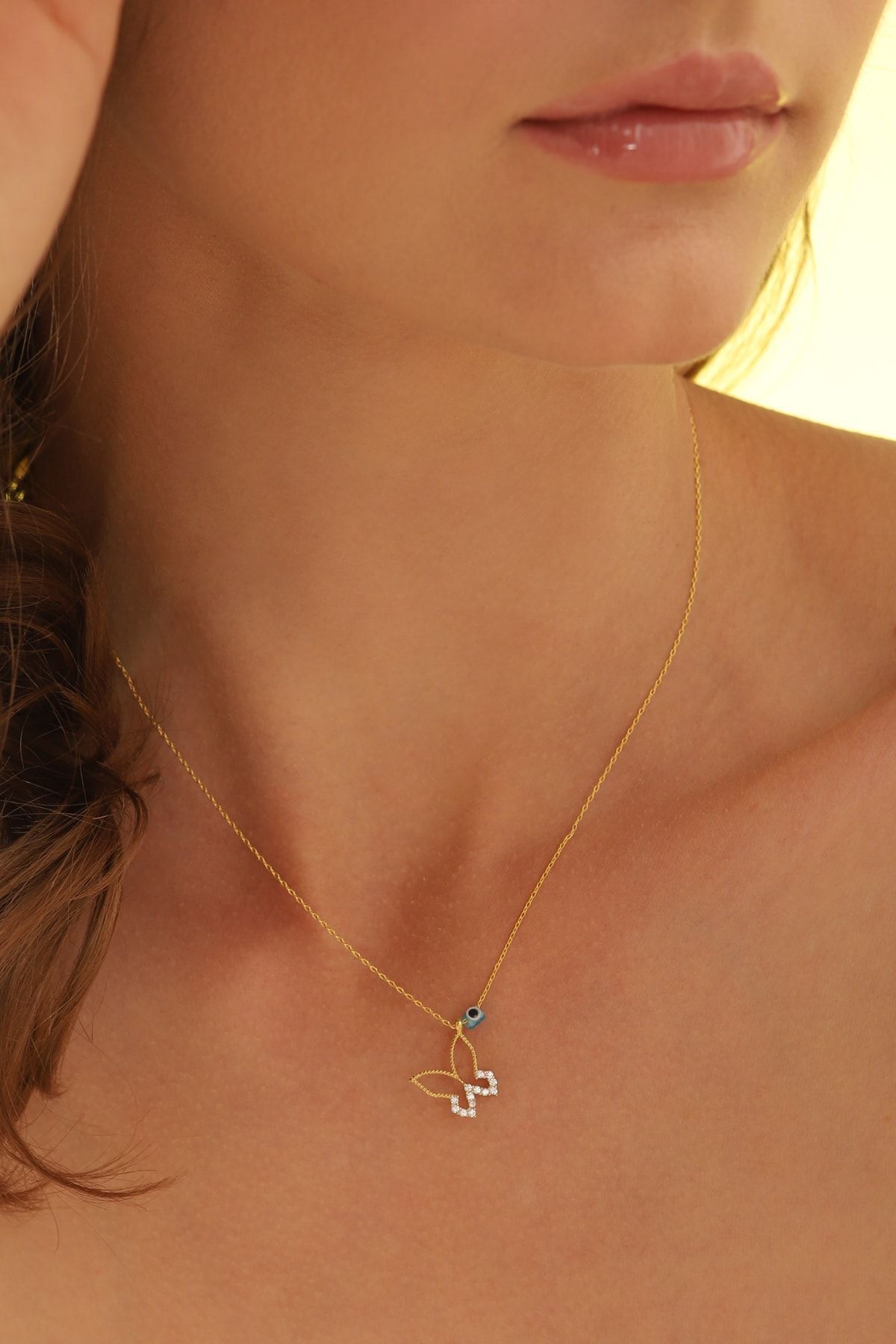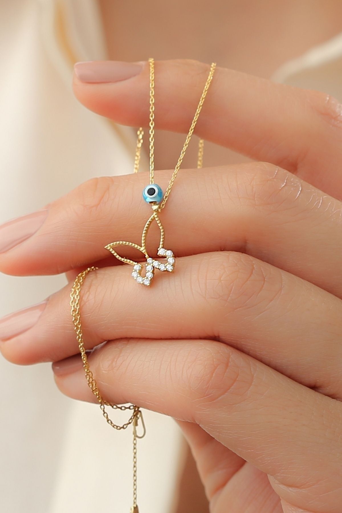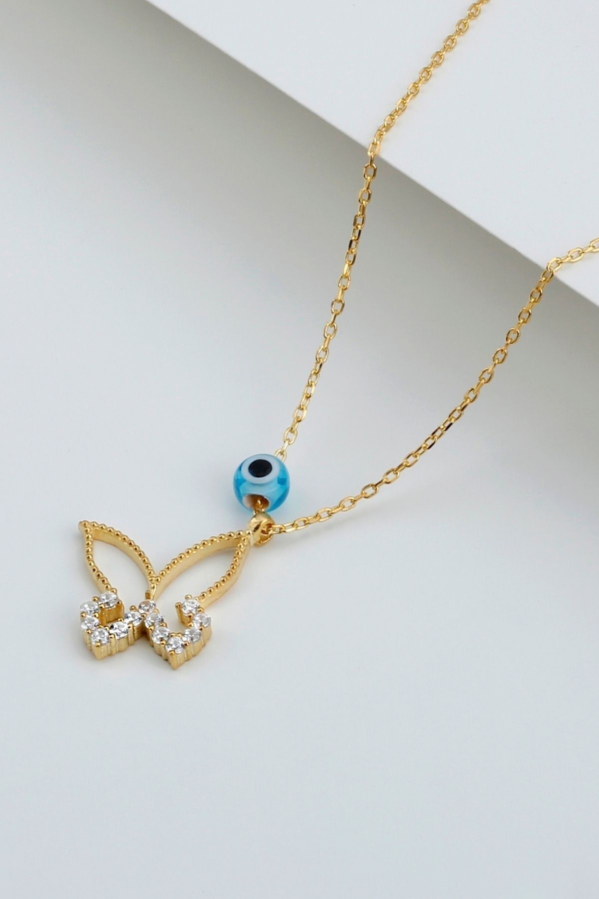 925 Ayar Nazarlı Kelebek Gold Gümüş Kolye