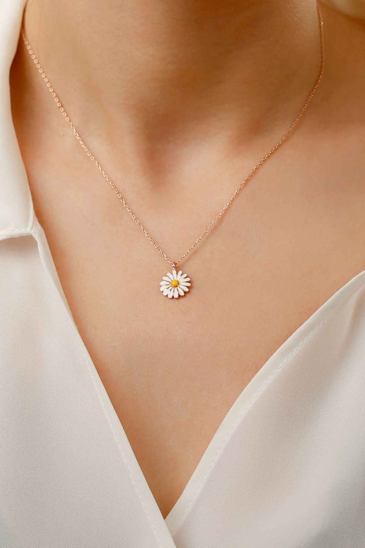 925 Ayar Papatya Gümüş Kolye