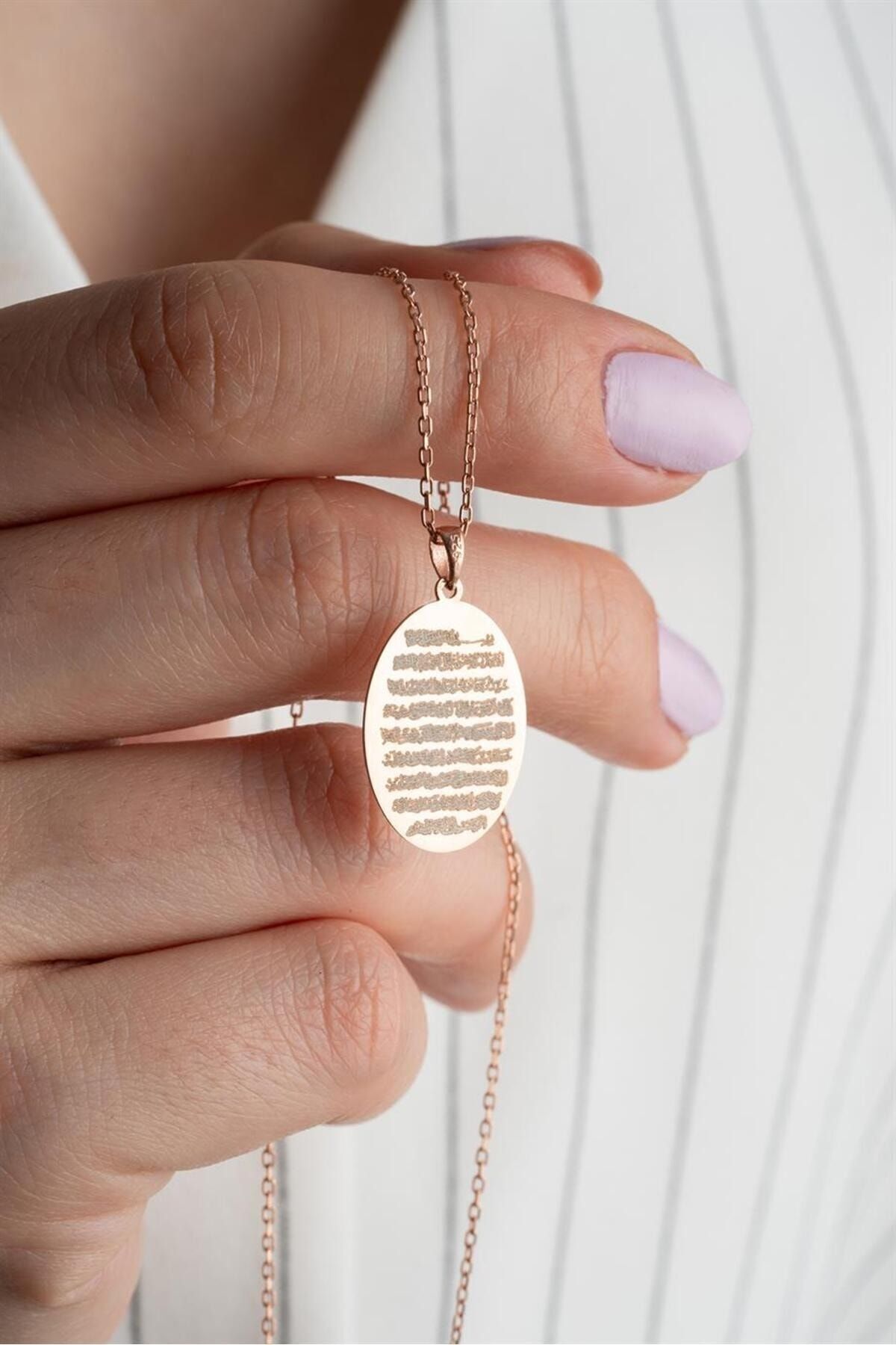 925 Ayar Rose Ayetel Kürsi Gümüş Kolye