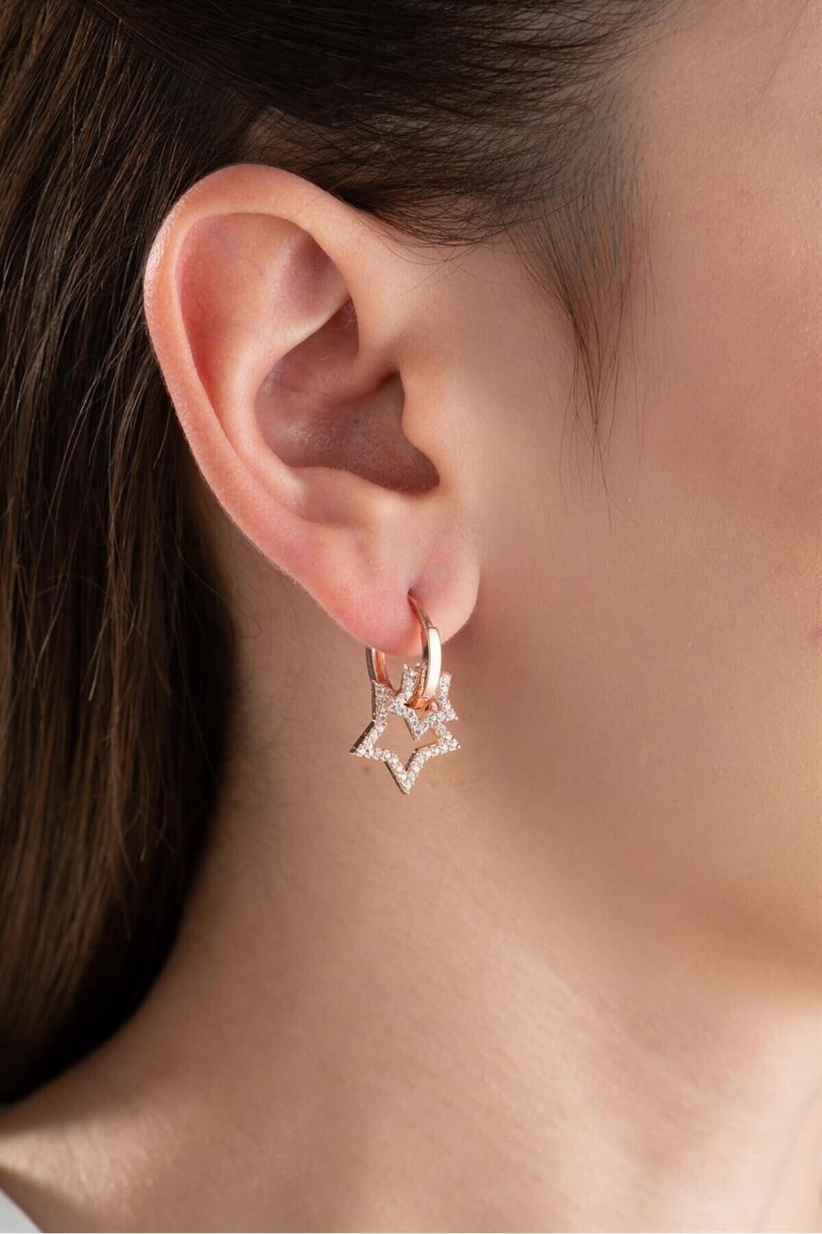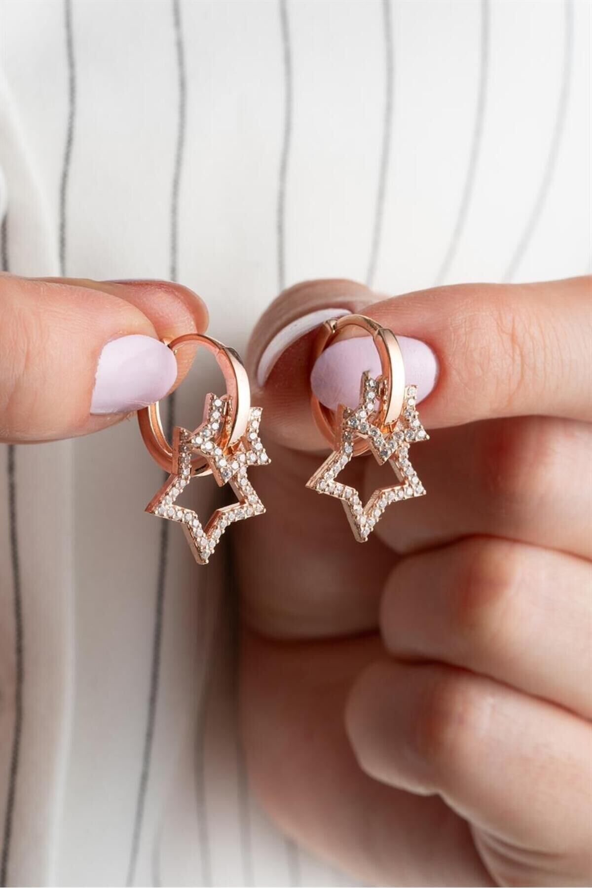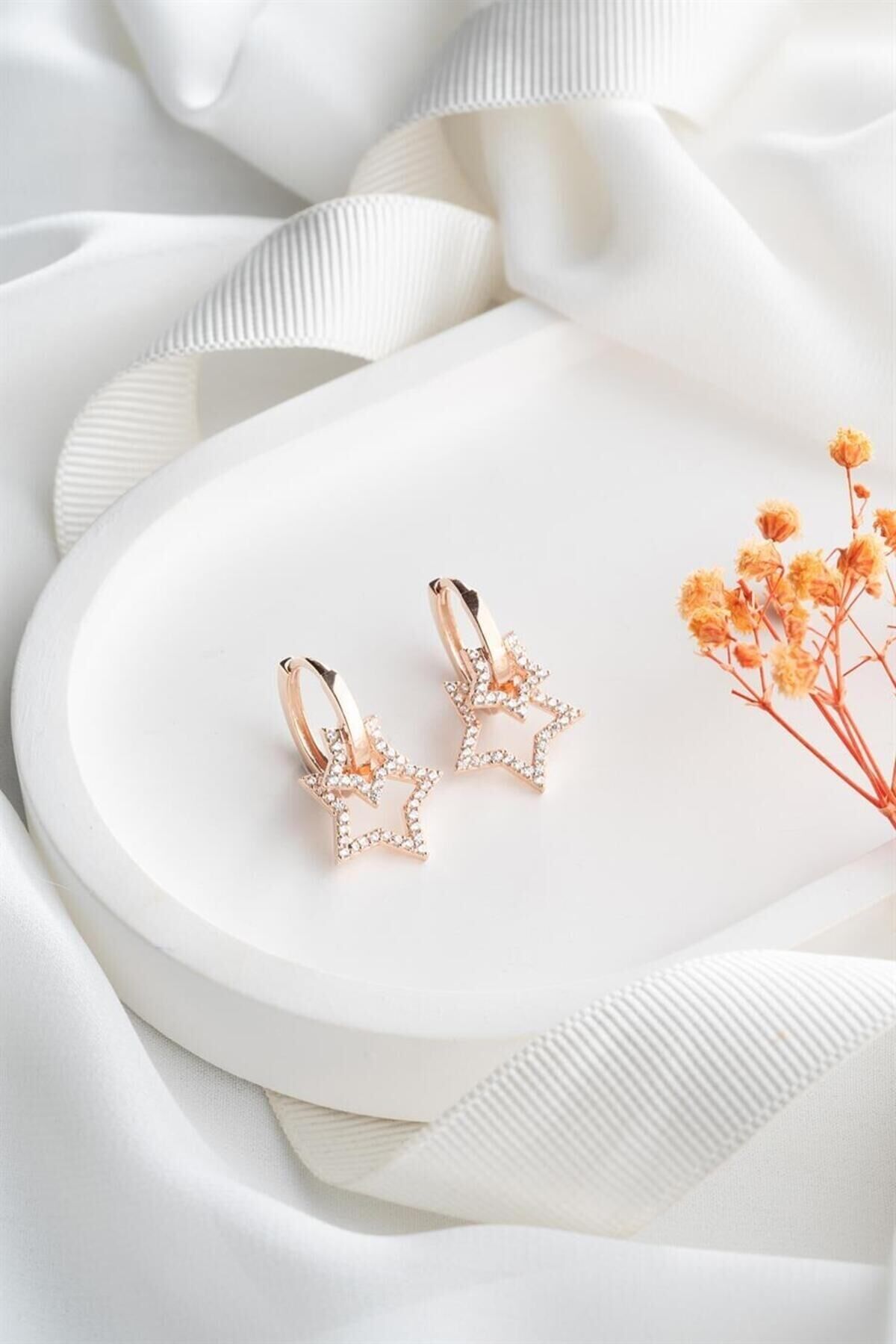 925 Ayar Rose Çift Yıldız Gümüş Küpe
