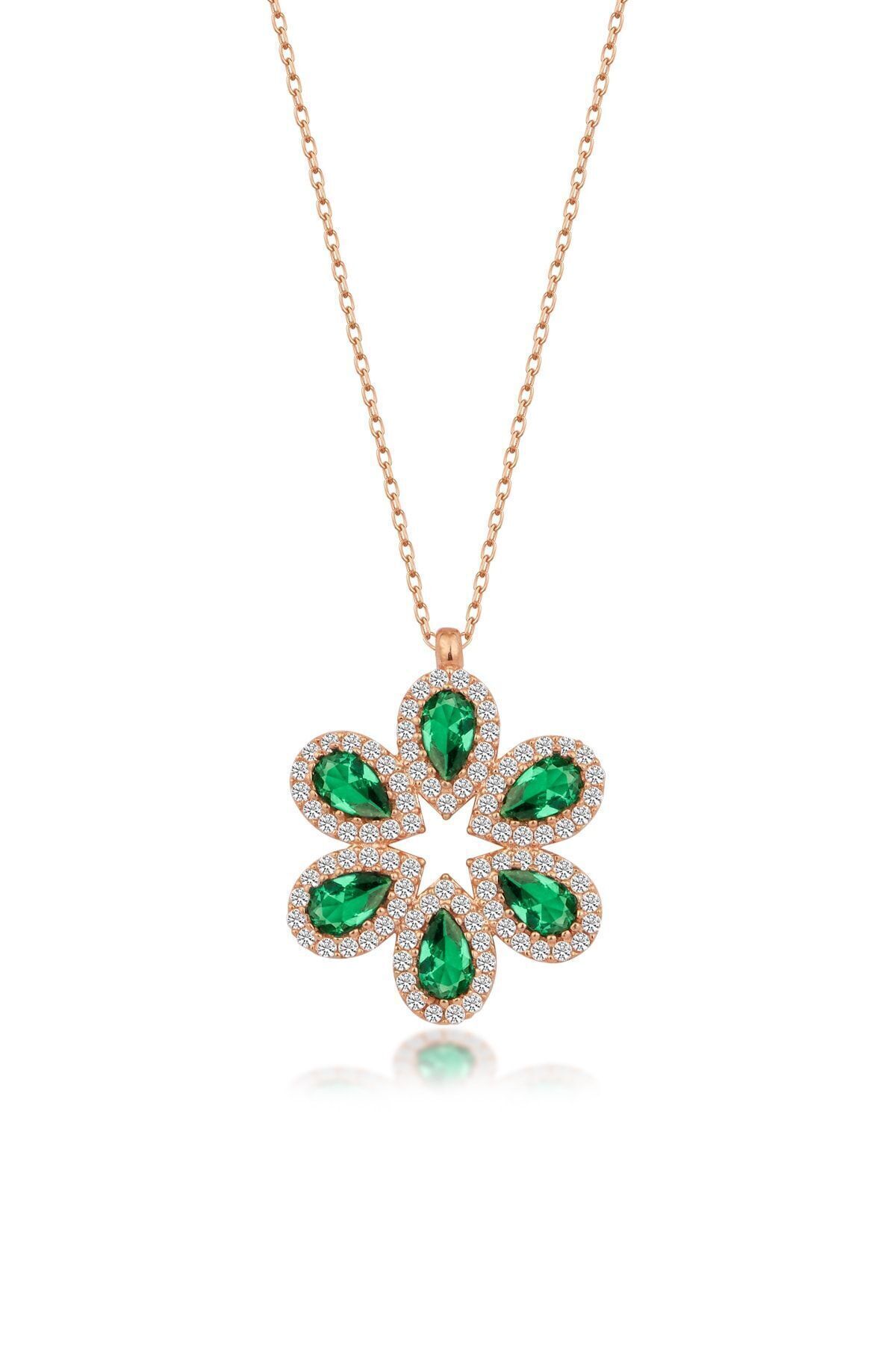 925 Ayar Rose Damla Zirkon Taşlı Gümüş Kolye