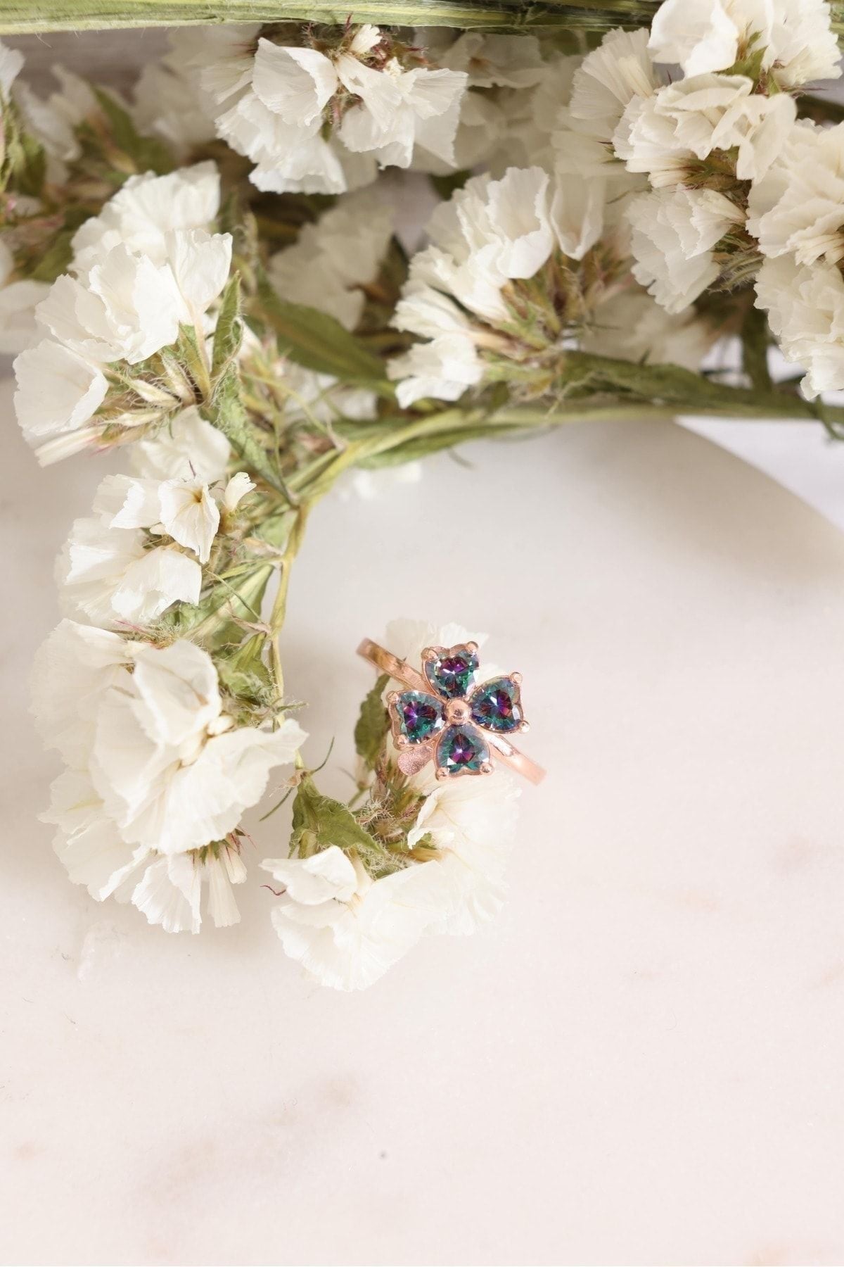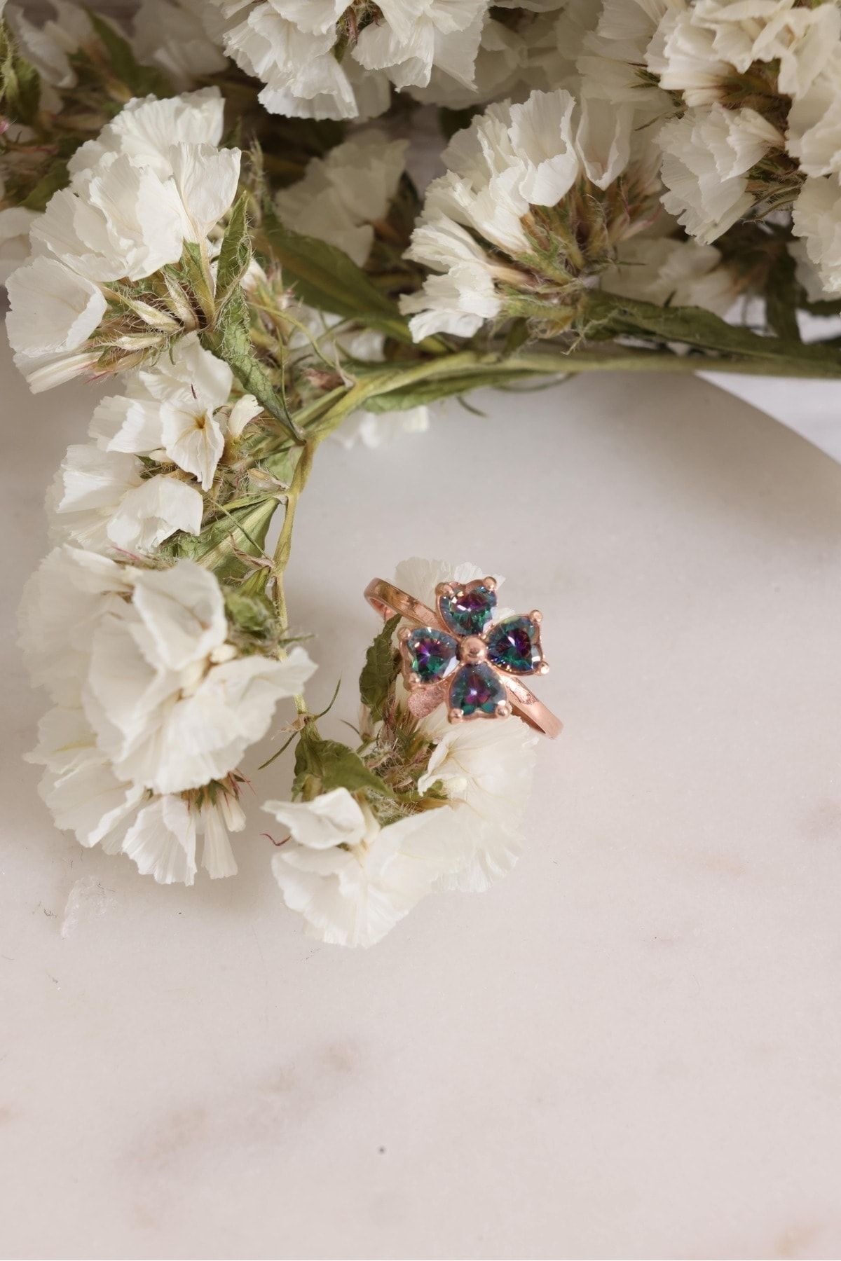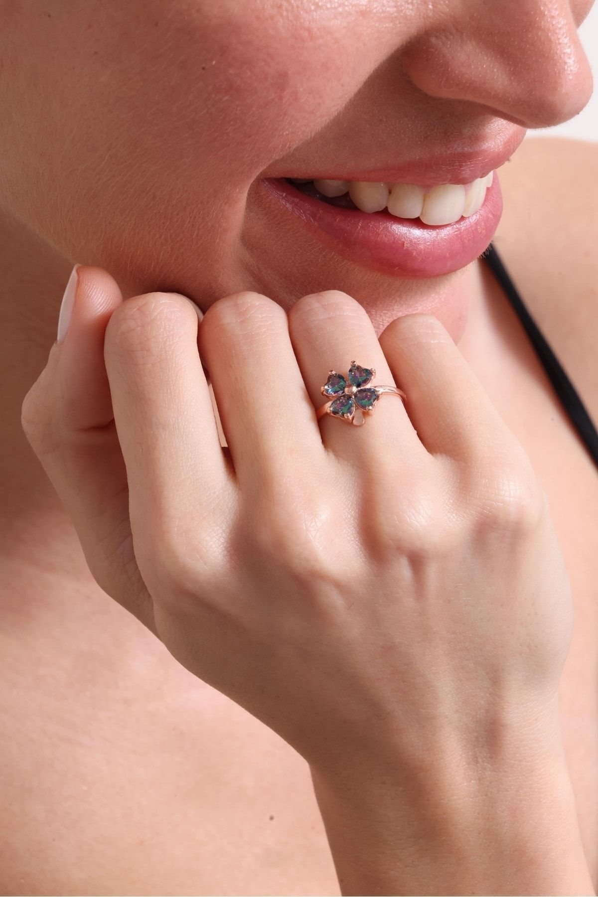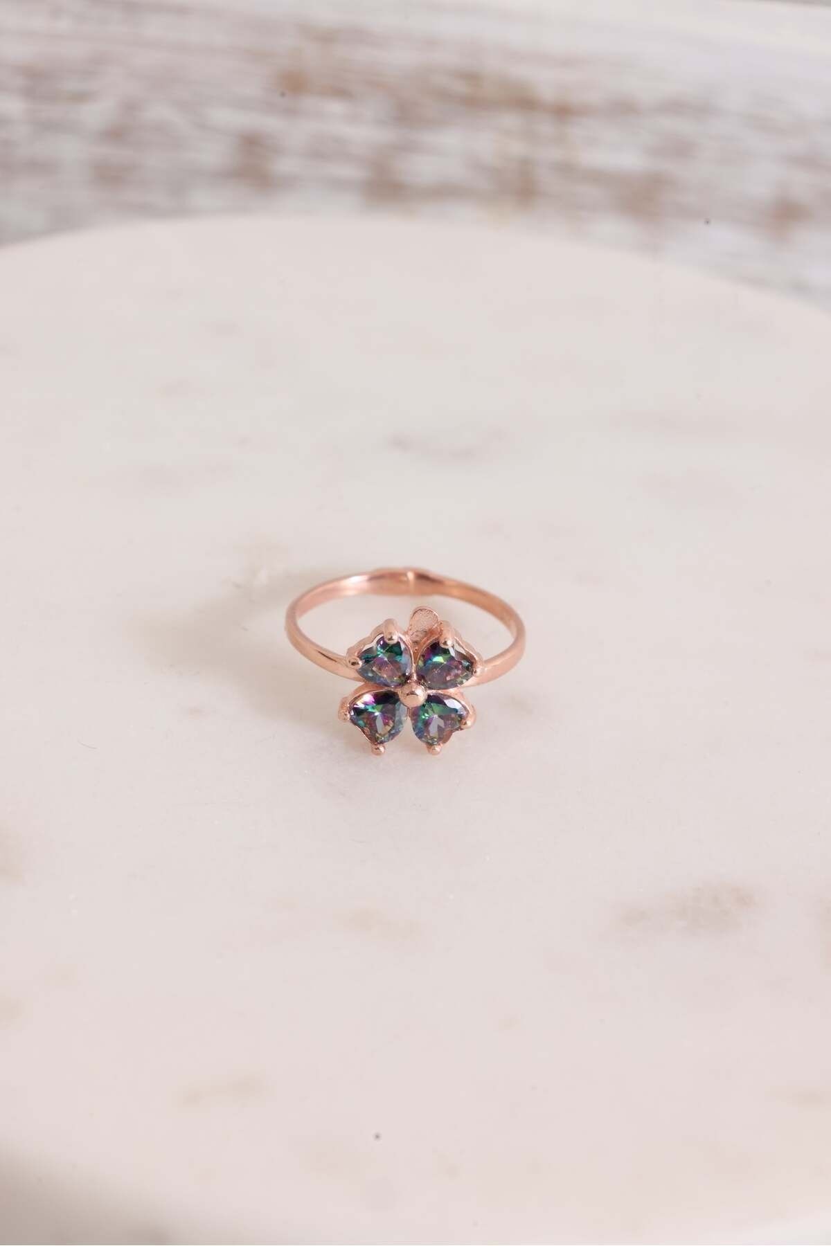 925 Ayar Rose Gümüş Mistik Yonca Yüzük
