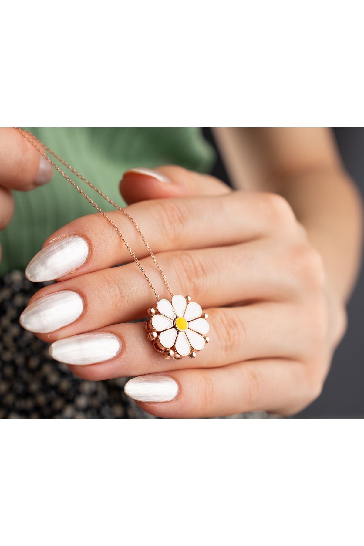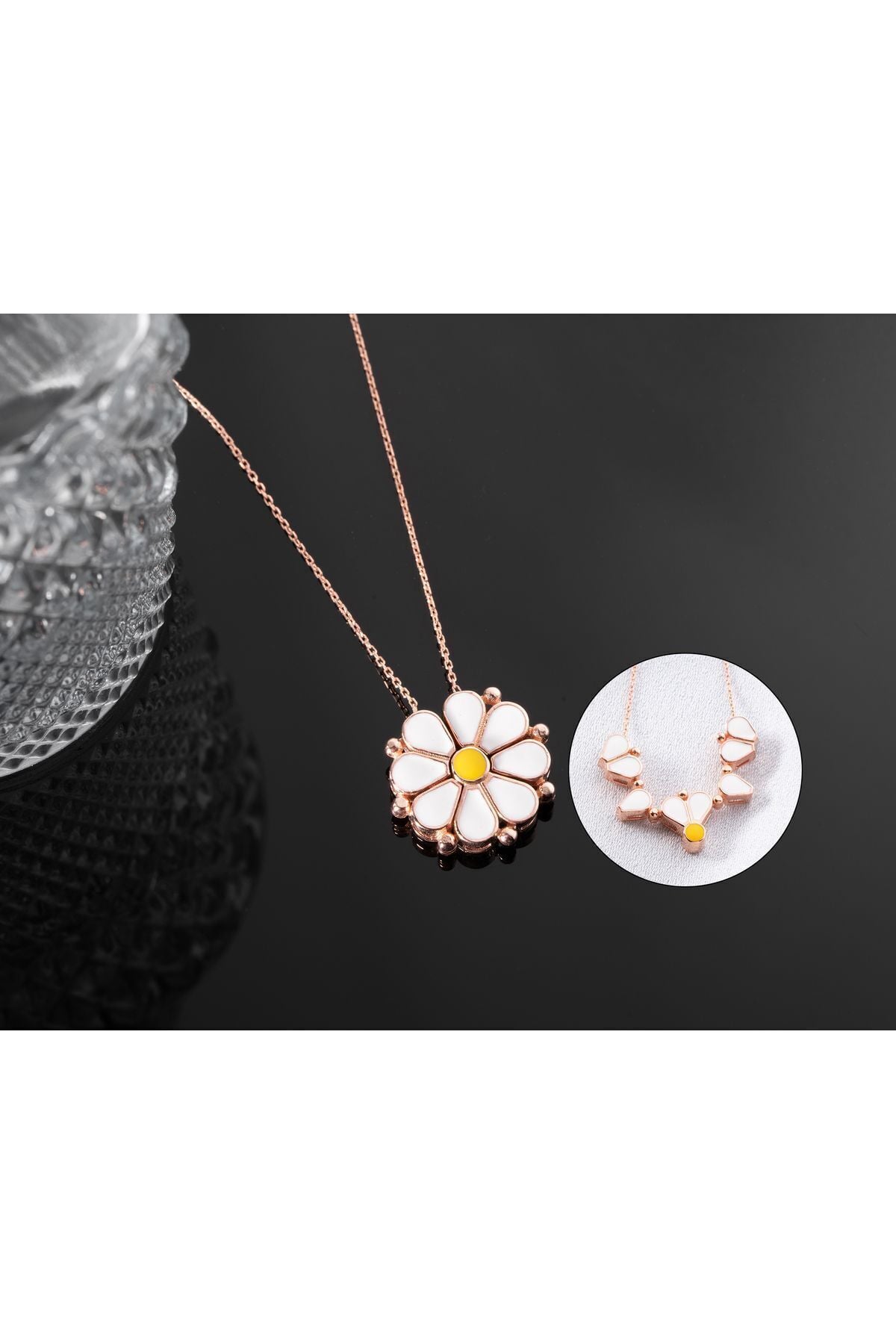 925 Ayar Rose Mineli Açılan Papatya Gümüş Kolye