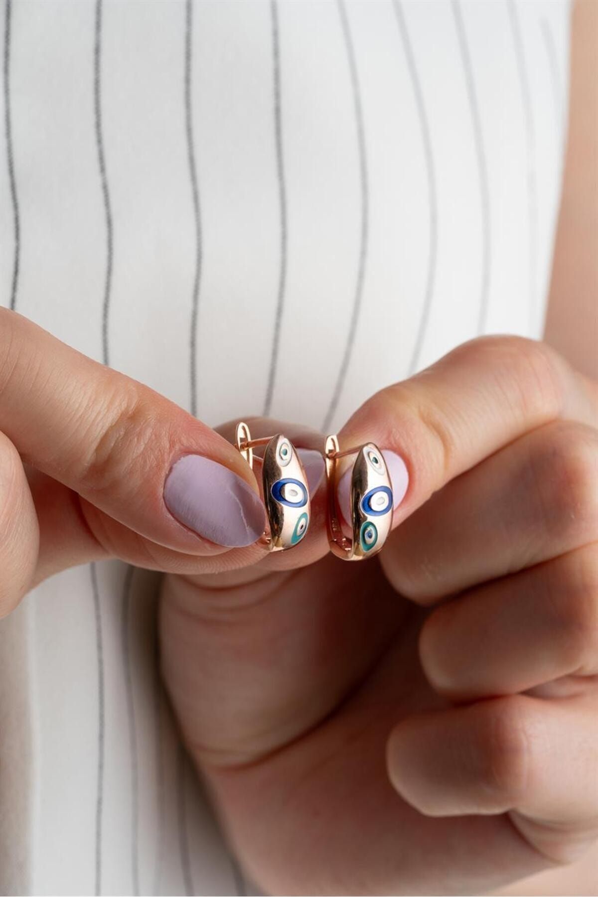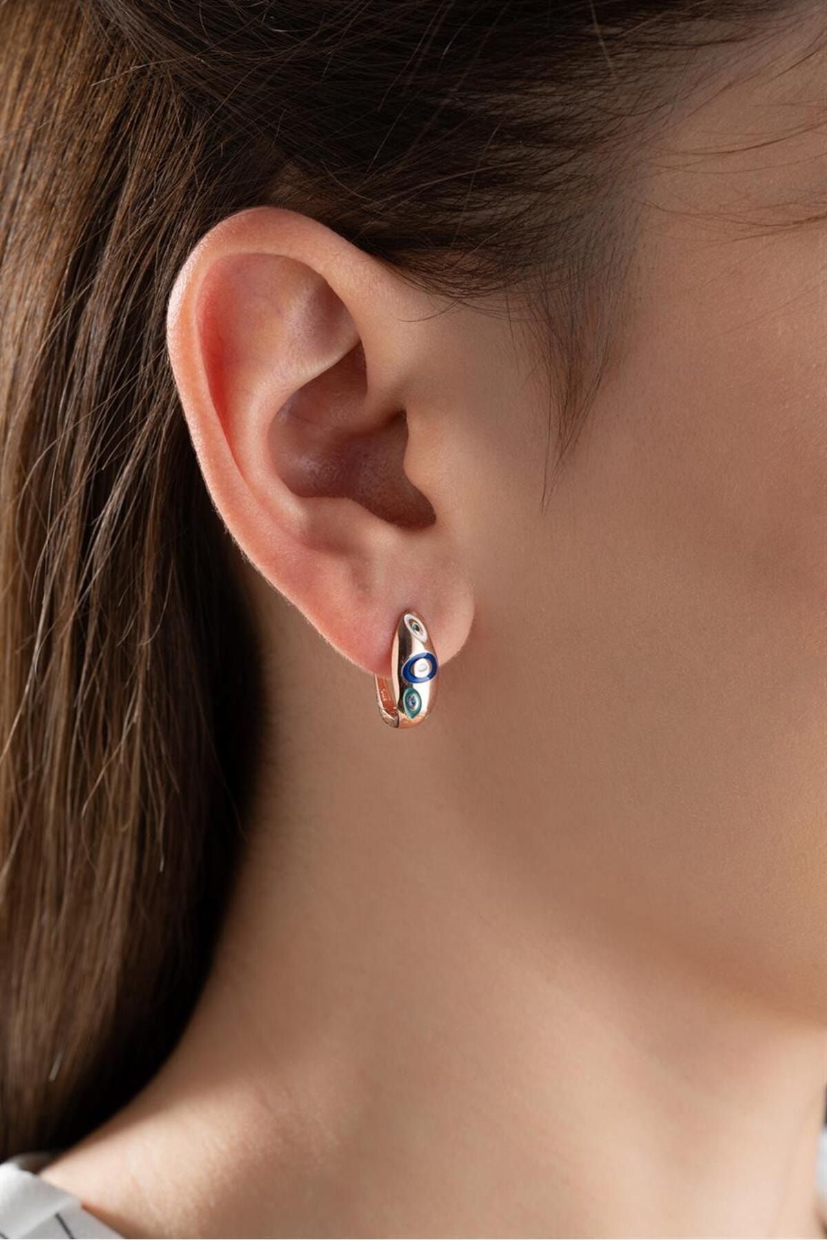925 Ayar Rose Mineli Nazar Gümüş Küpe