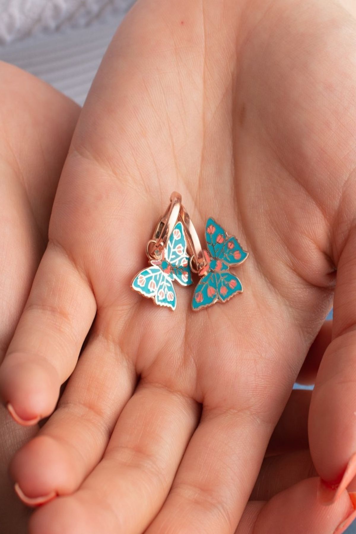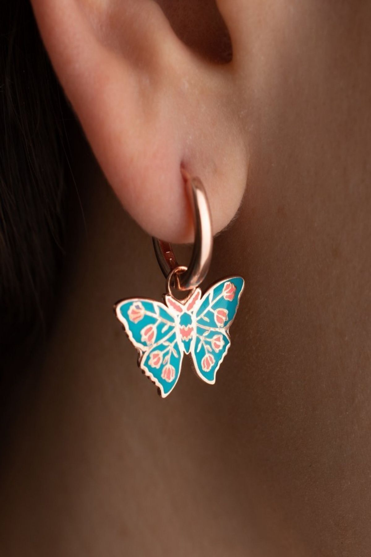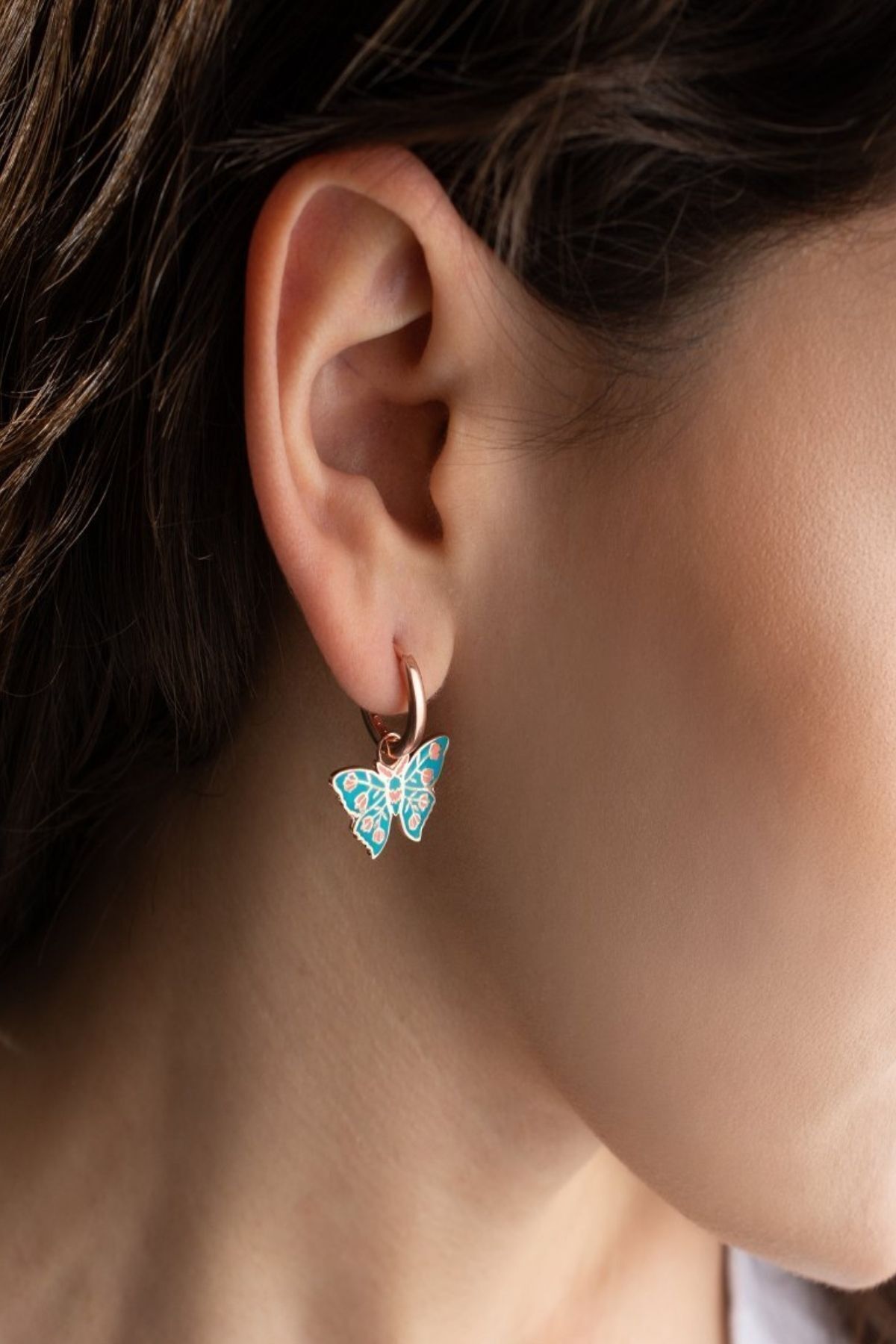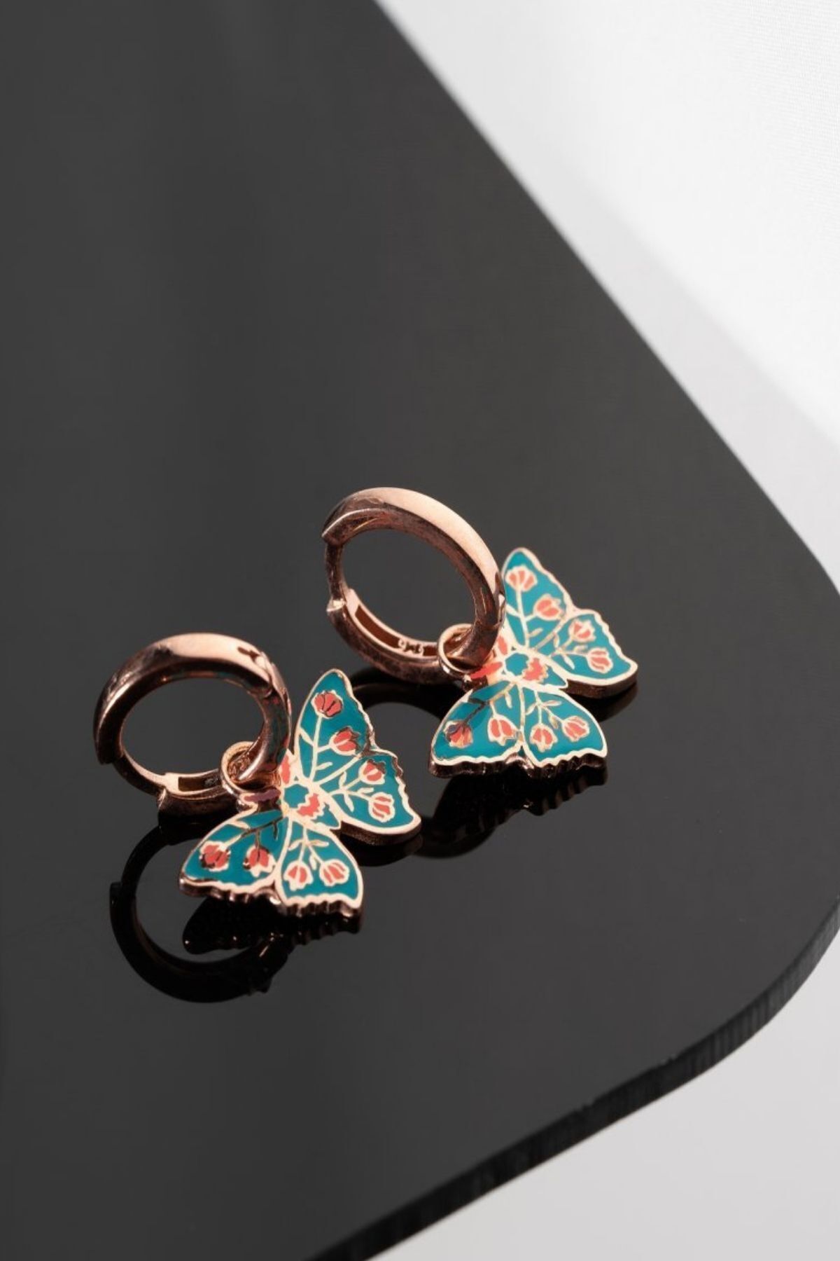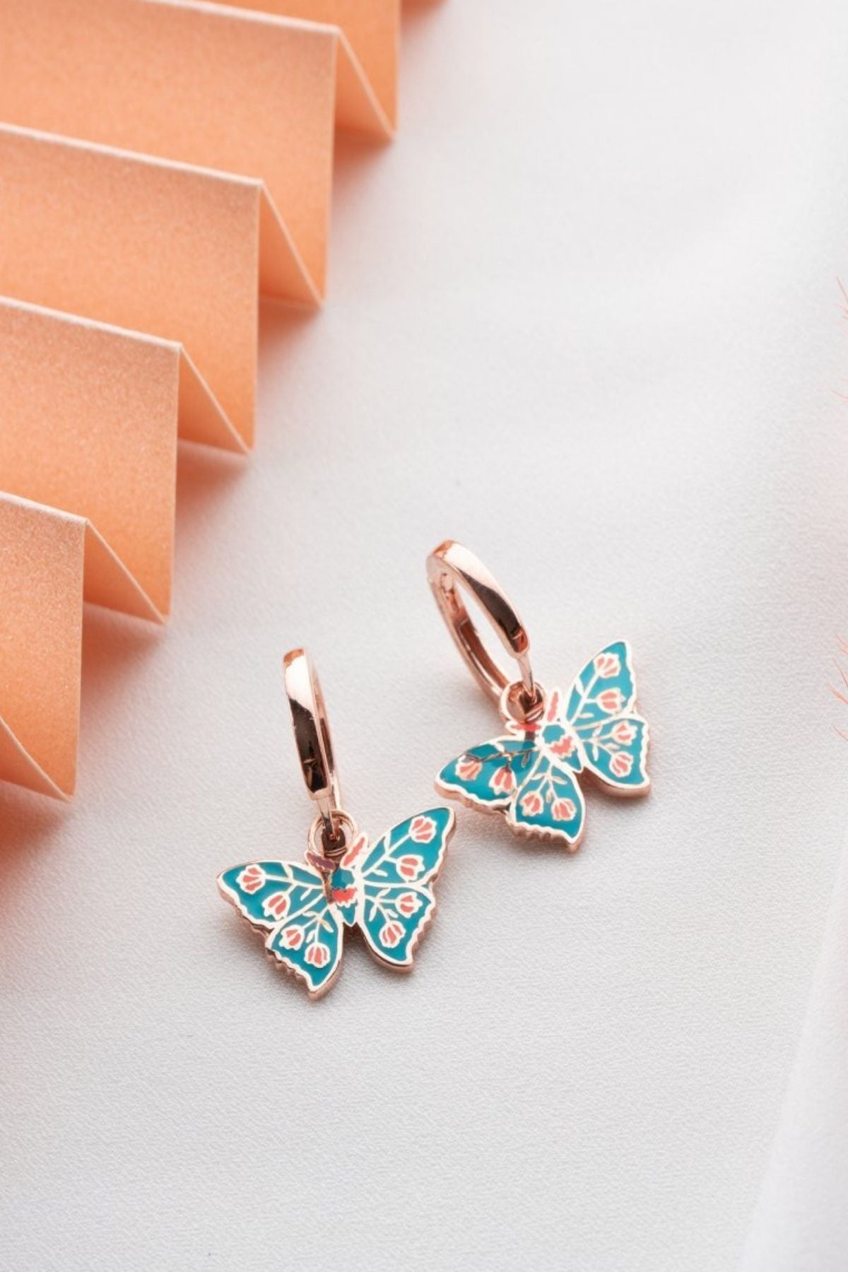 925 Ayar Rose Mineli Yeşil Kelebek Gümüş Küpe