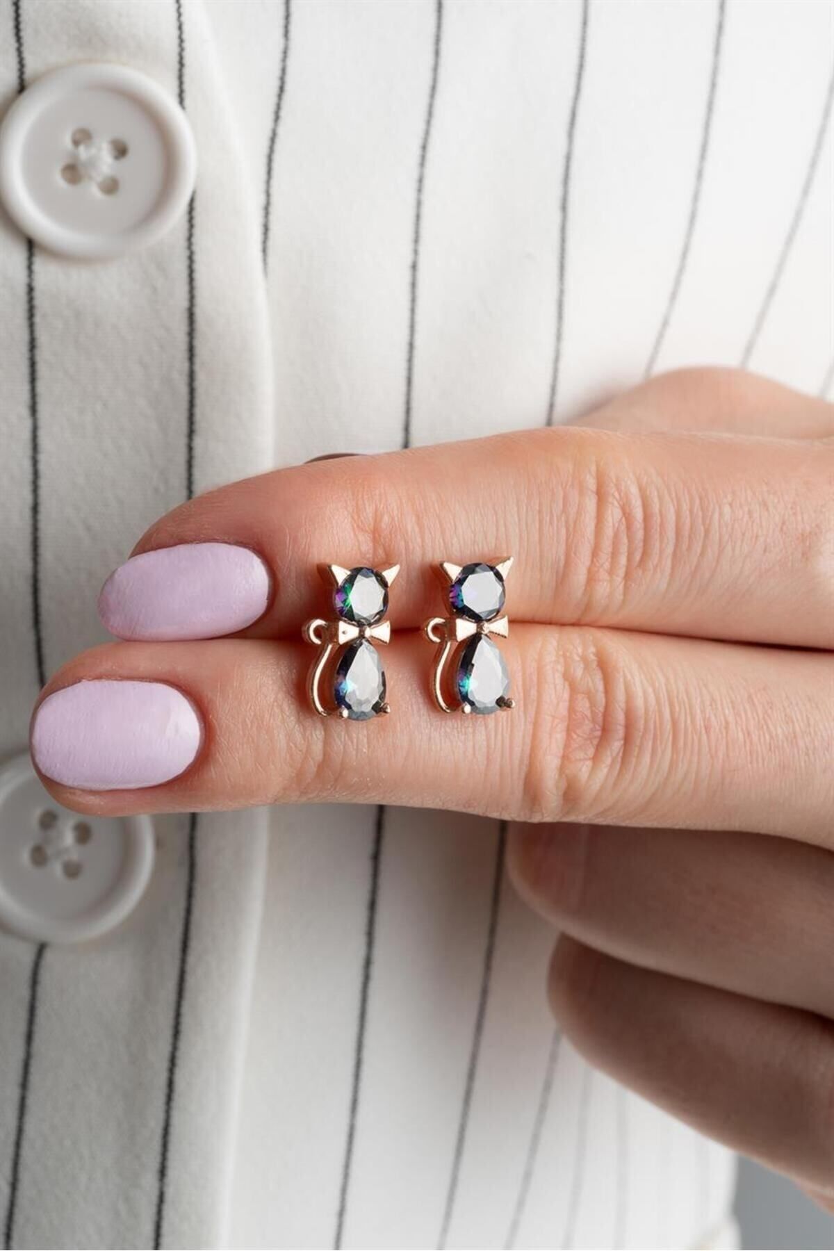 925 Ayar Rose Mistik Topaz Kedi Gümüş Küpe