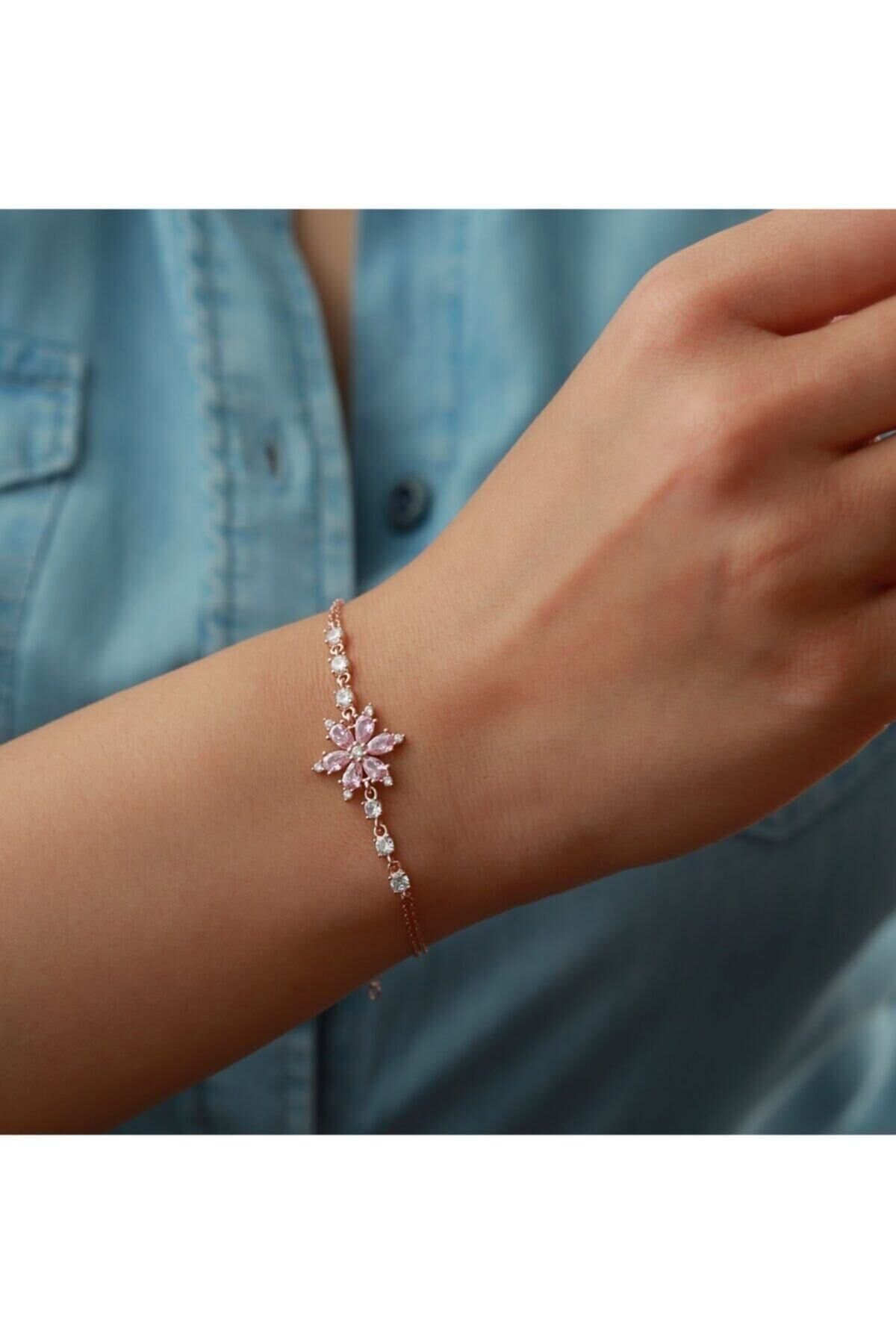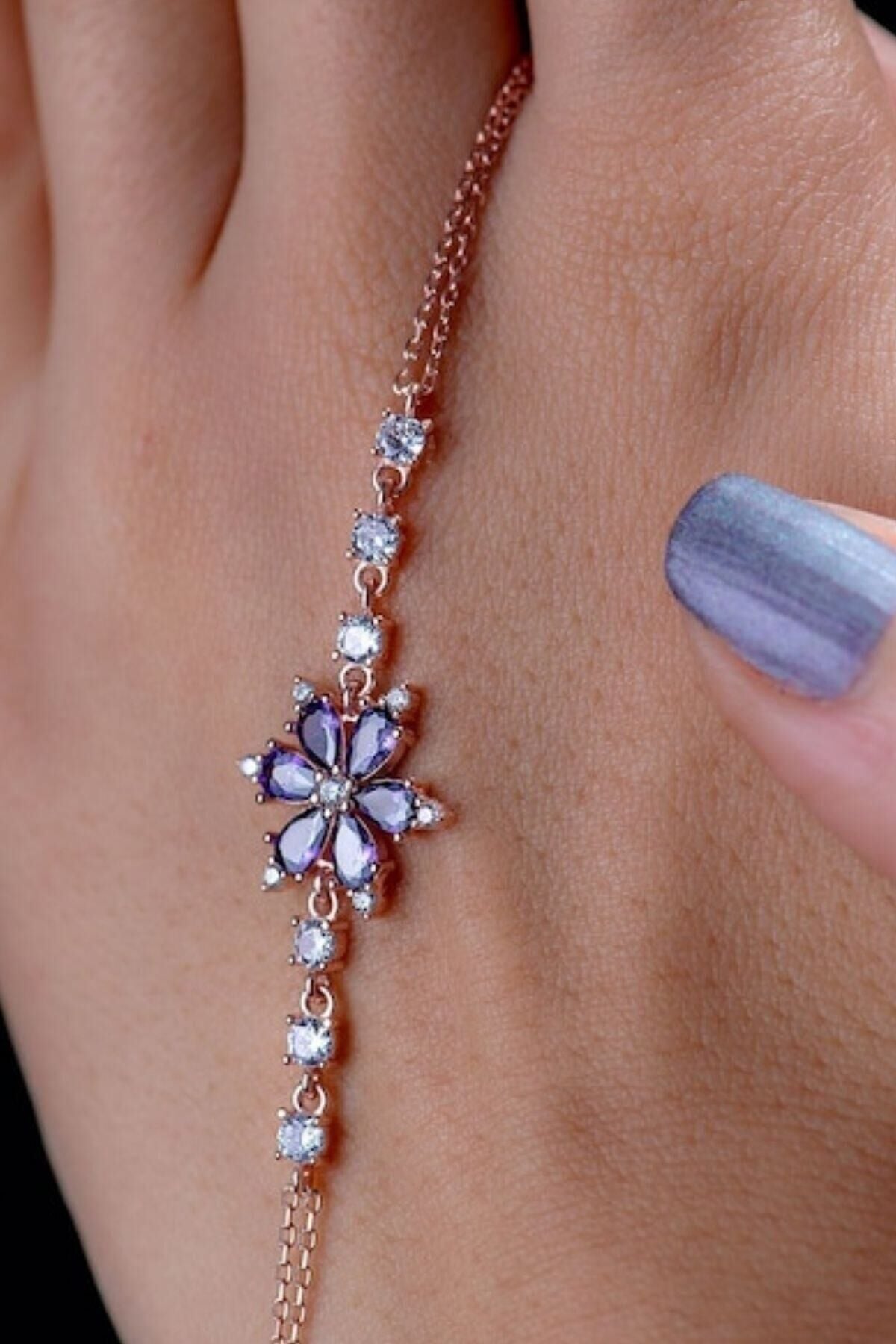 925 Ayar Rose Mor Taşlı Lotus Gümüş Bileklik