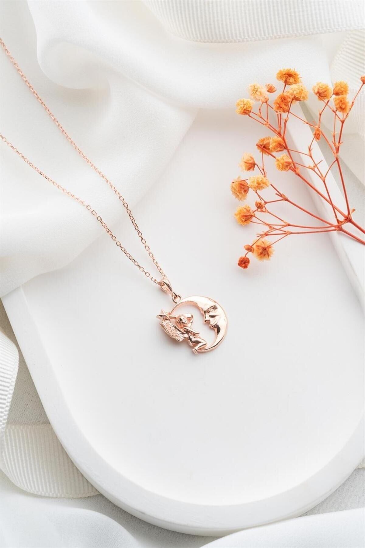 925 Ayar Rose Perili Hilal Gümüş Kolye
