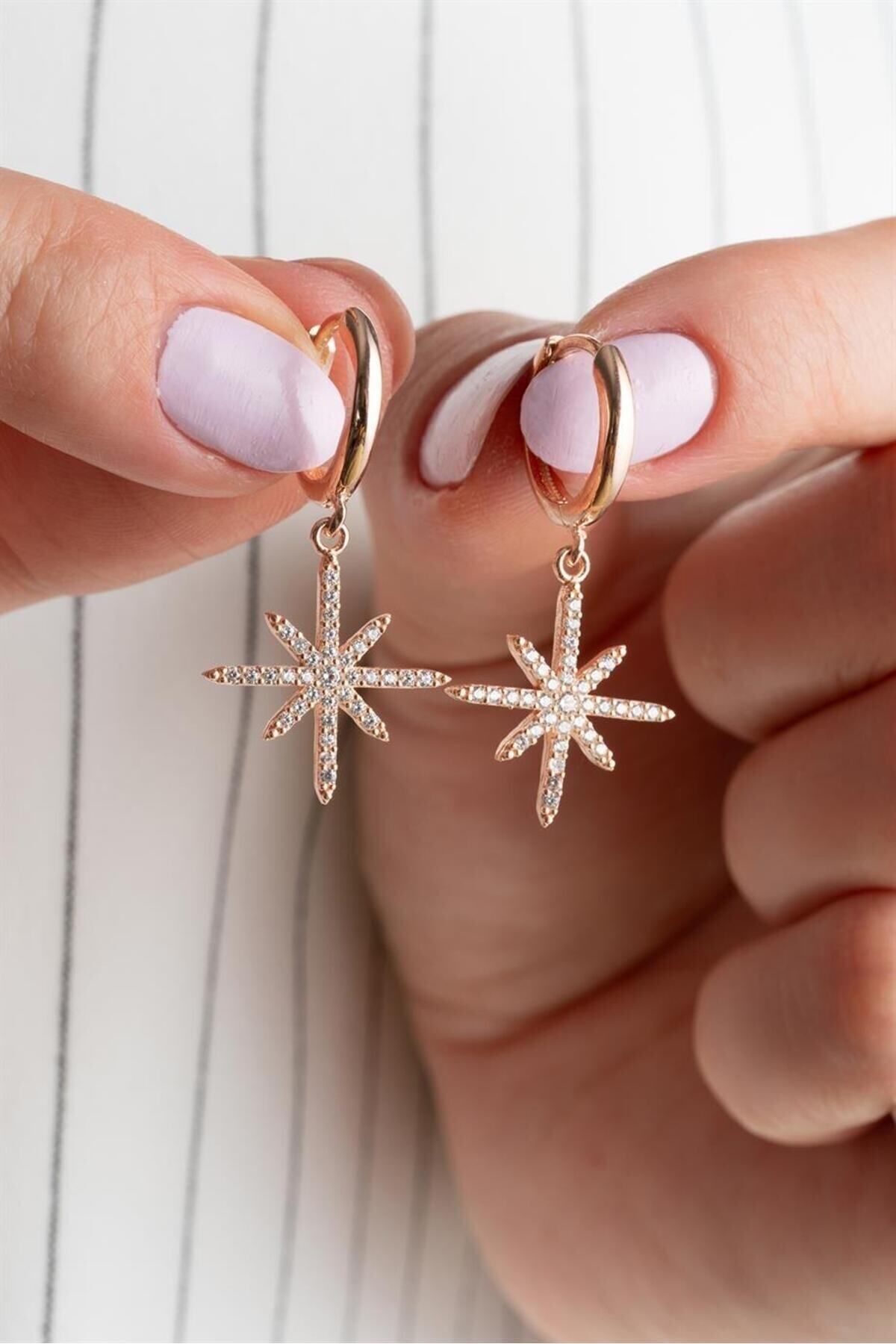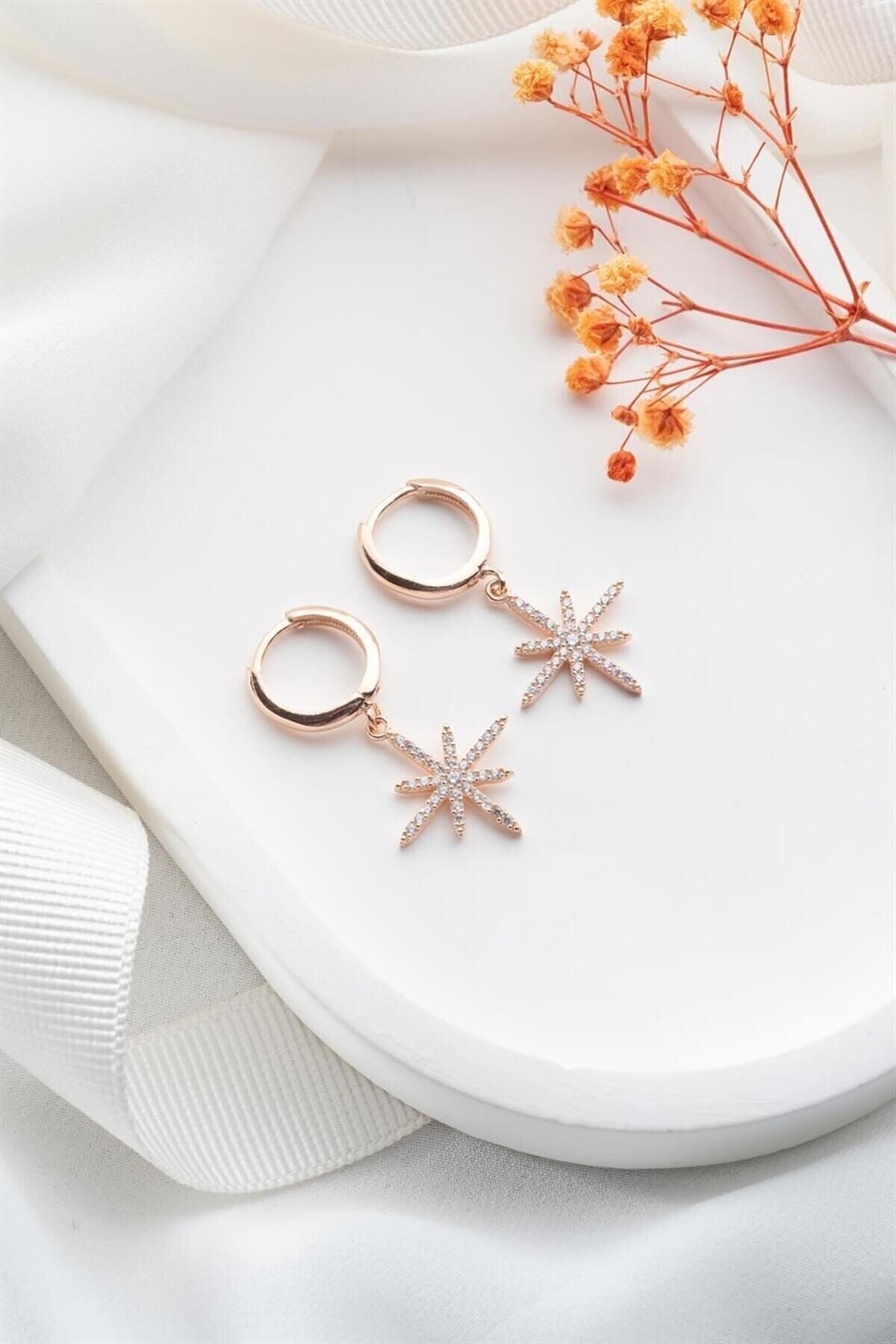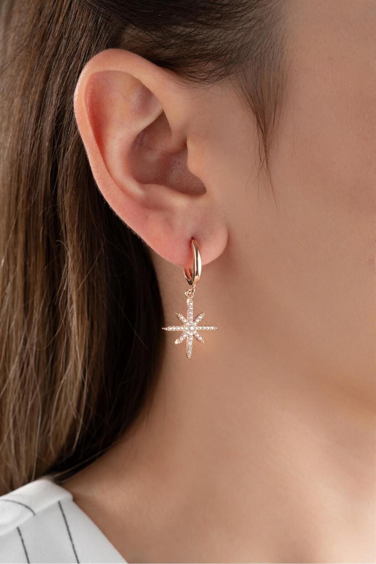 925 Ayar Rose Sallantılı Kutup Yıldızı Gümüş Küpe