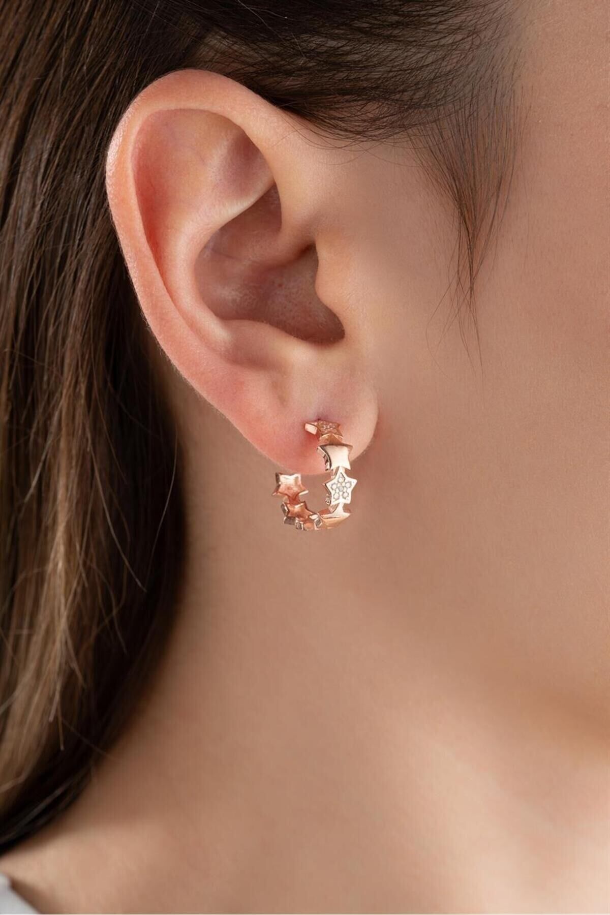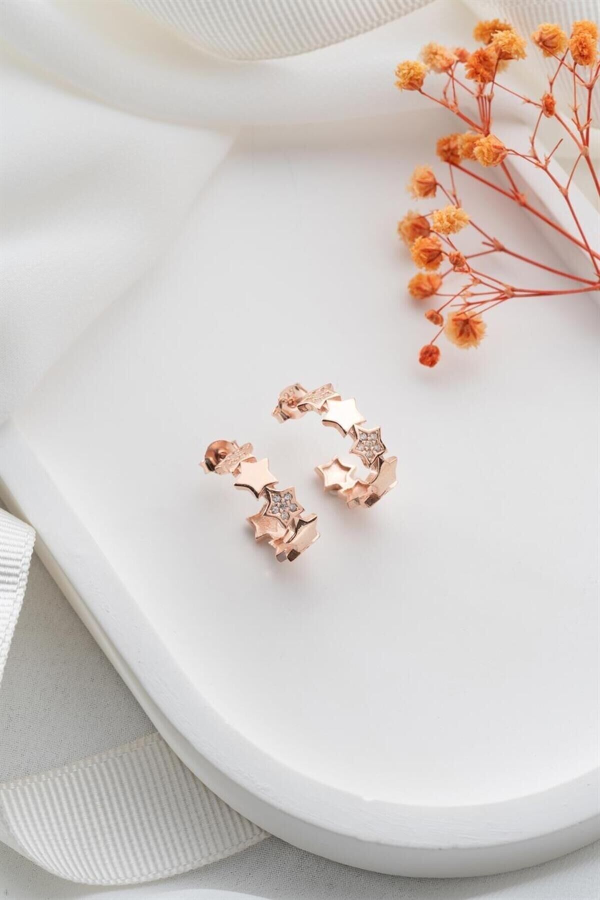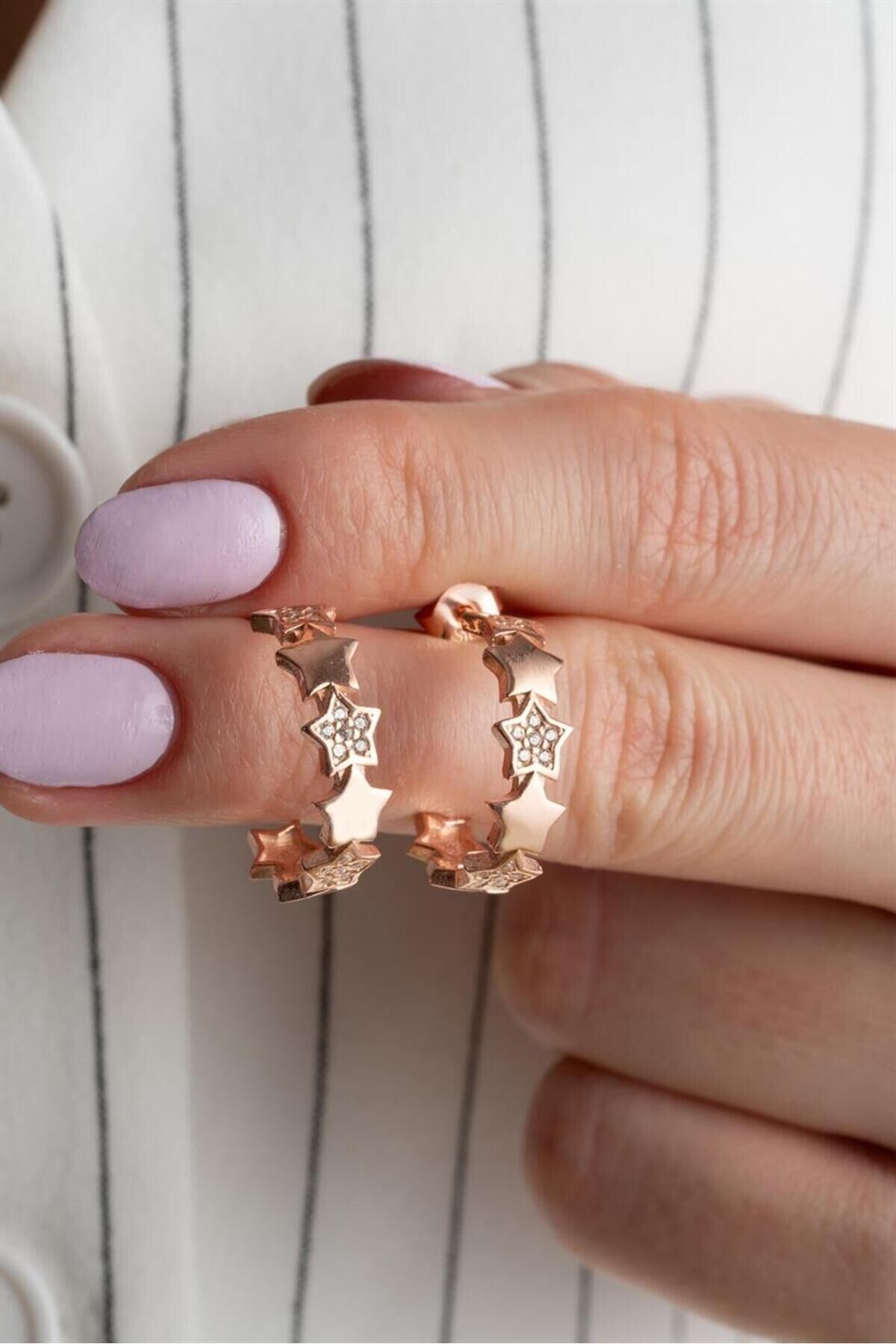 925 Ayar Rose Yıldızlı Halka Gümüş Küpe