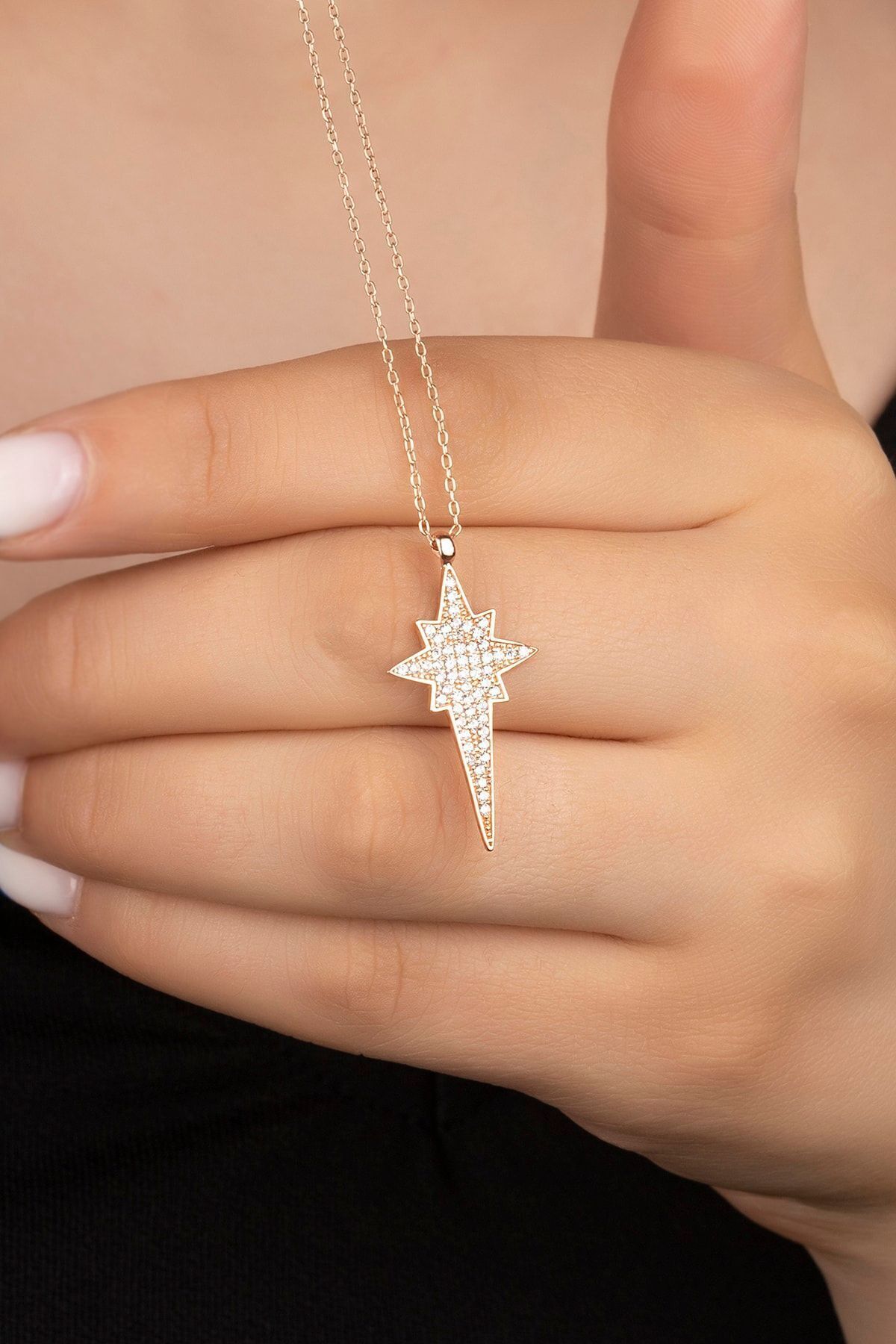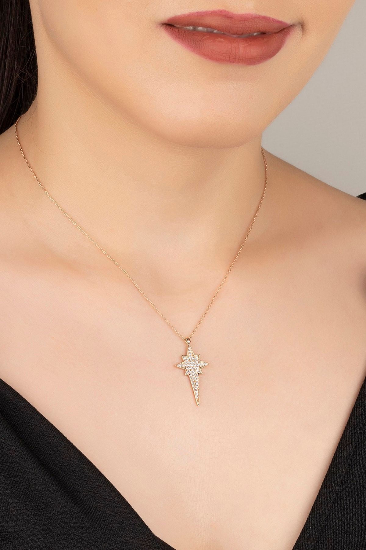 925 Ayar Rose Zirkkon Taşlı Kutup Yıldızı Gümüş Kolye