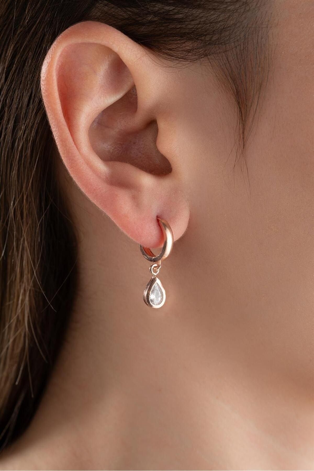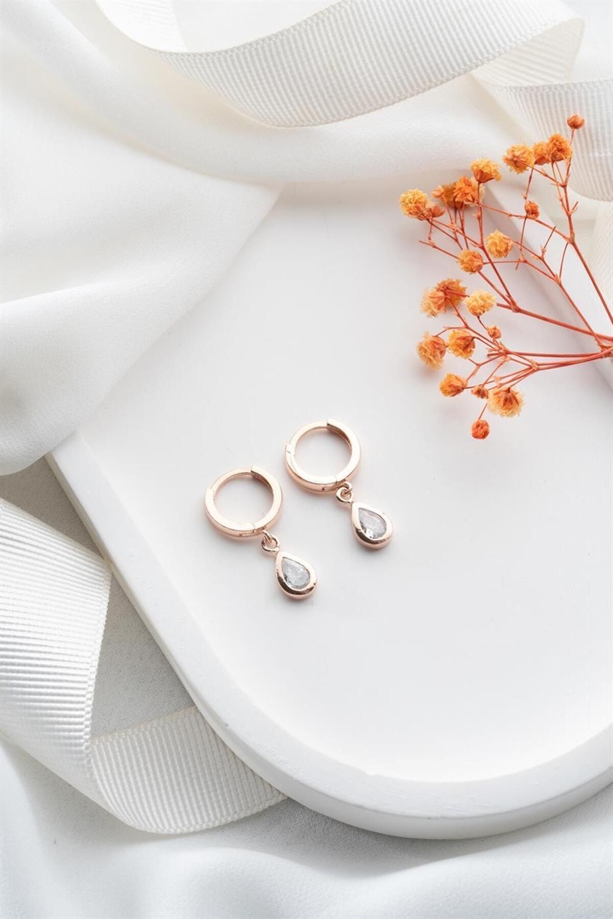 925 Ayar Rose Zirkon Taşlı Damla Gümüş Küpe