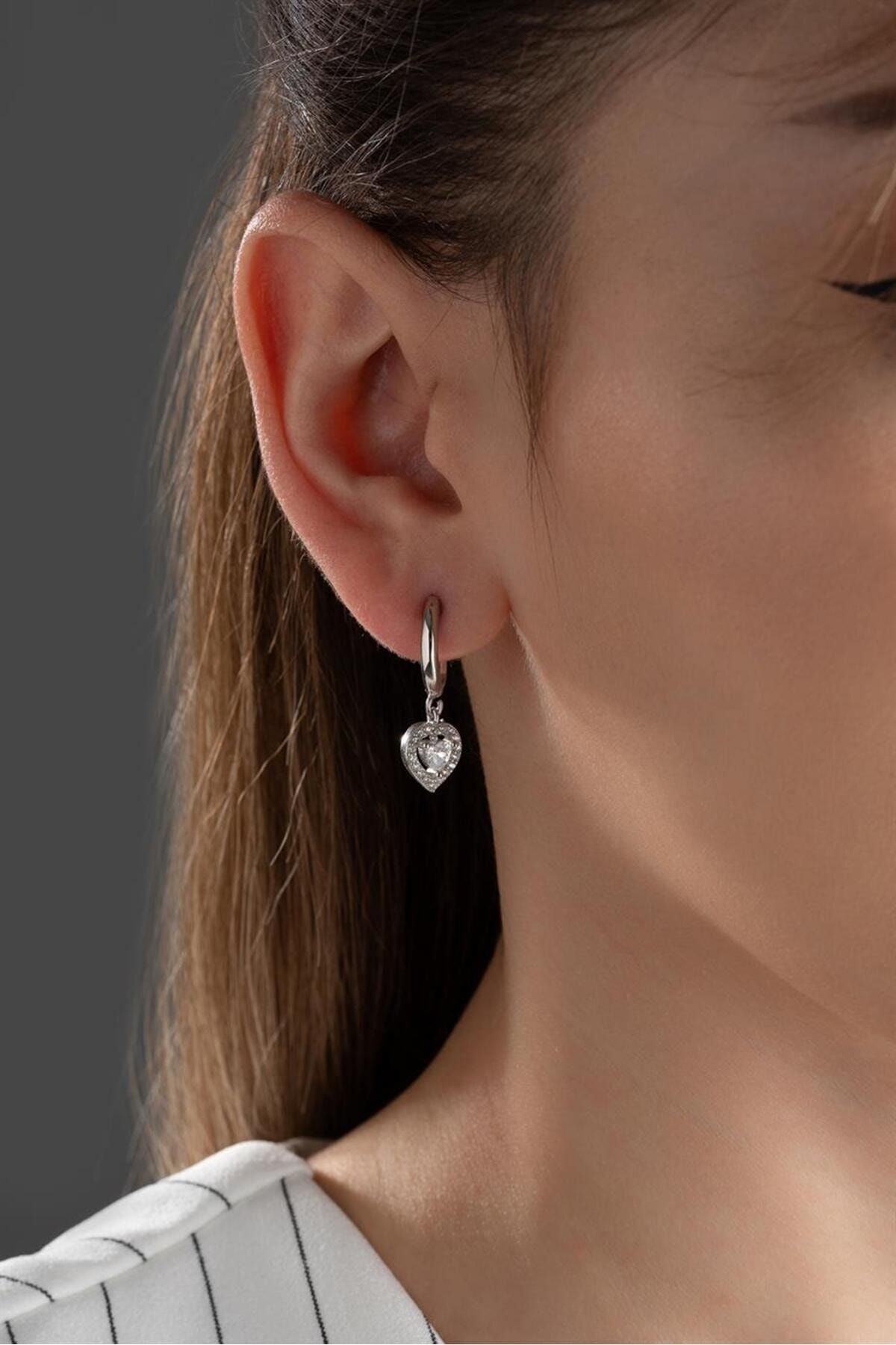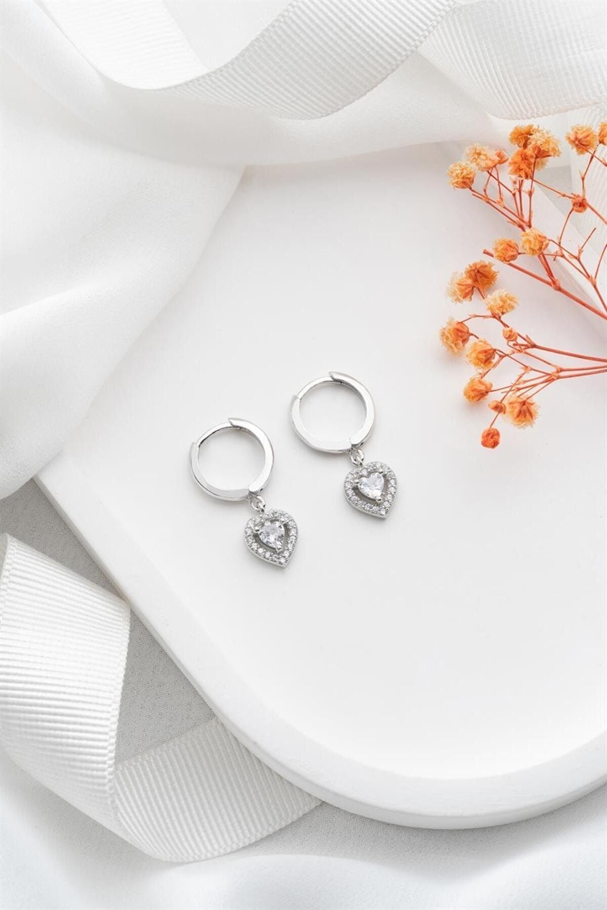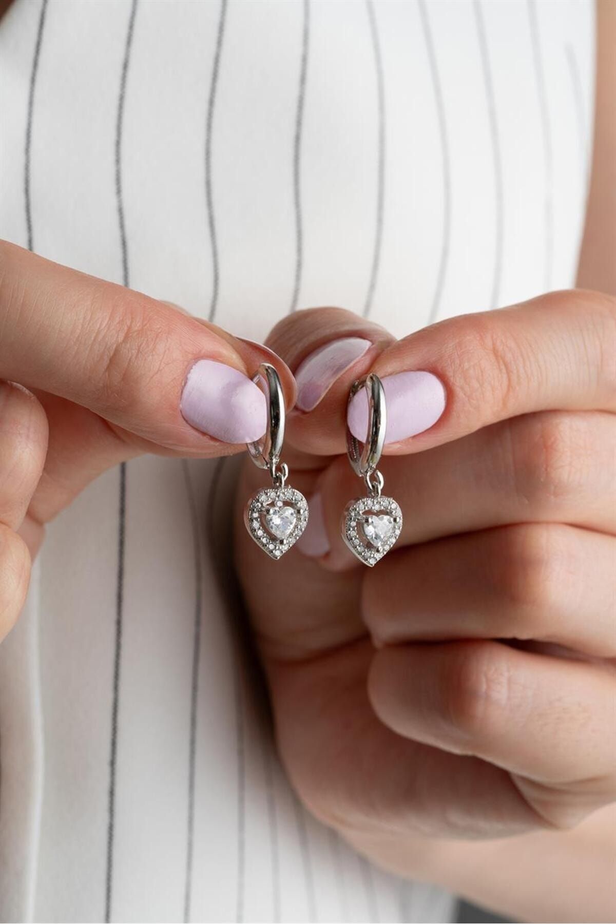 925 Ayar Sallantılı Kalp Gümüş Küpe
