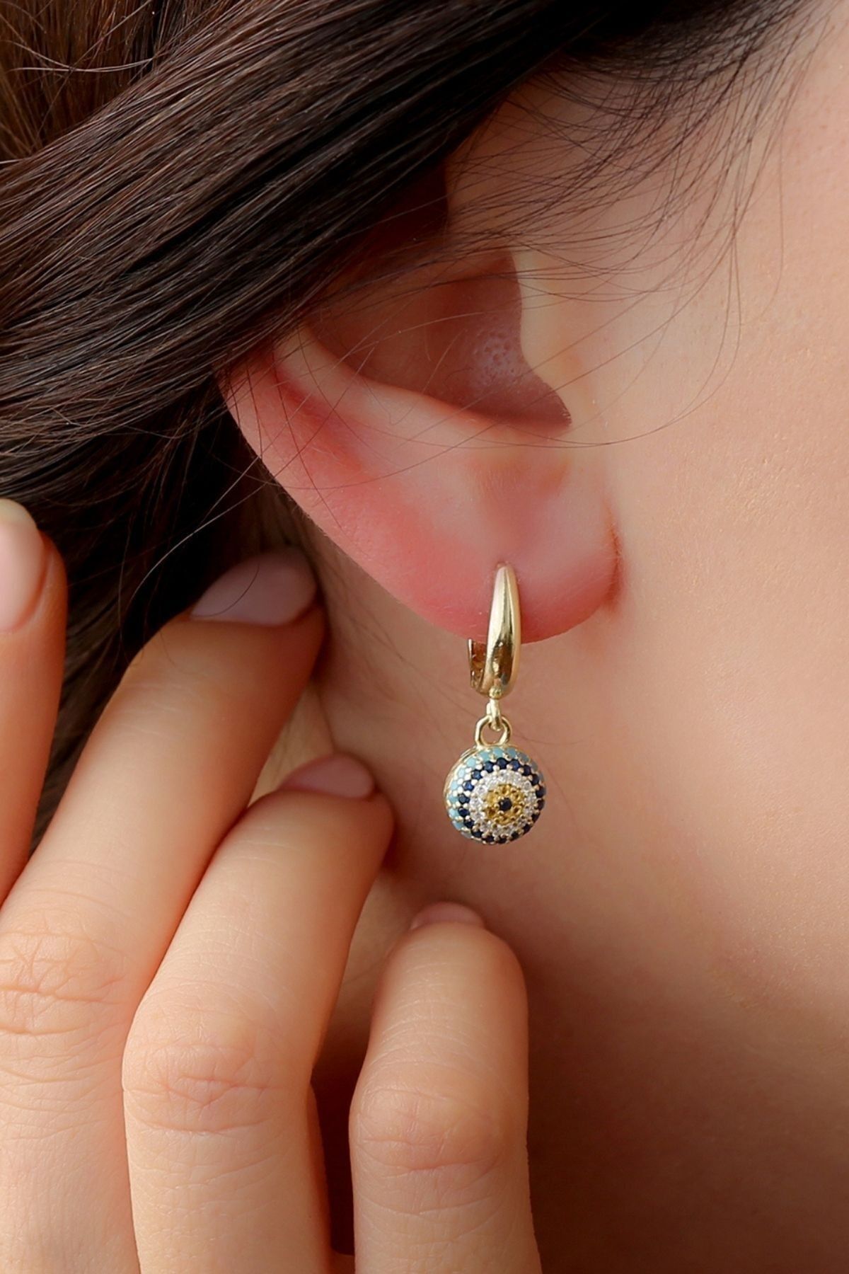 925 Ayar Sallantılı Nazar Gold Gümüş Küpe