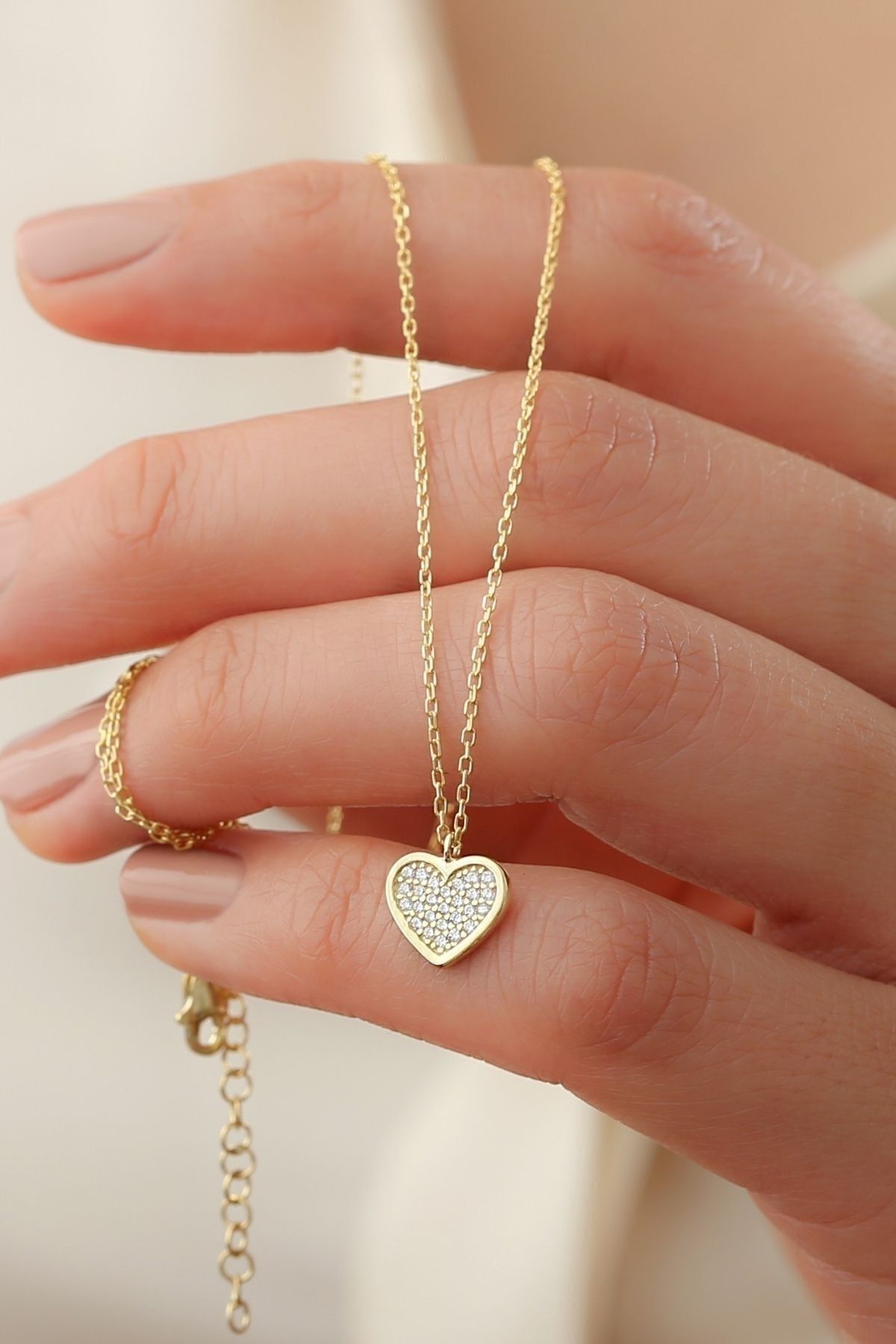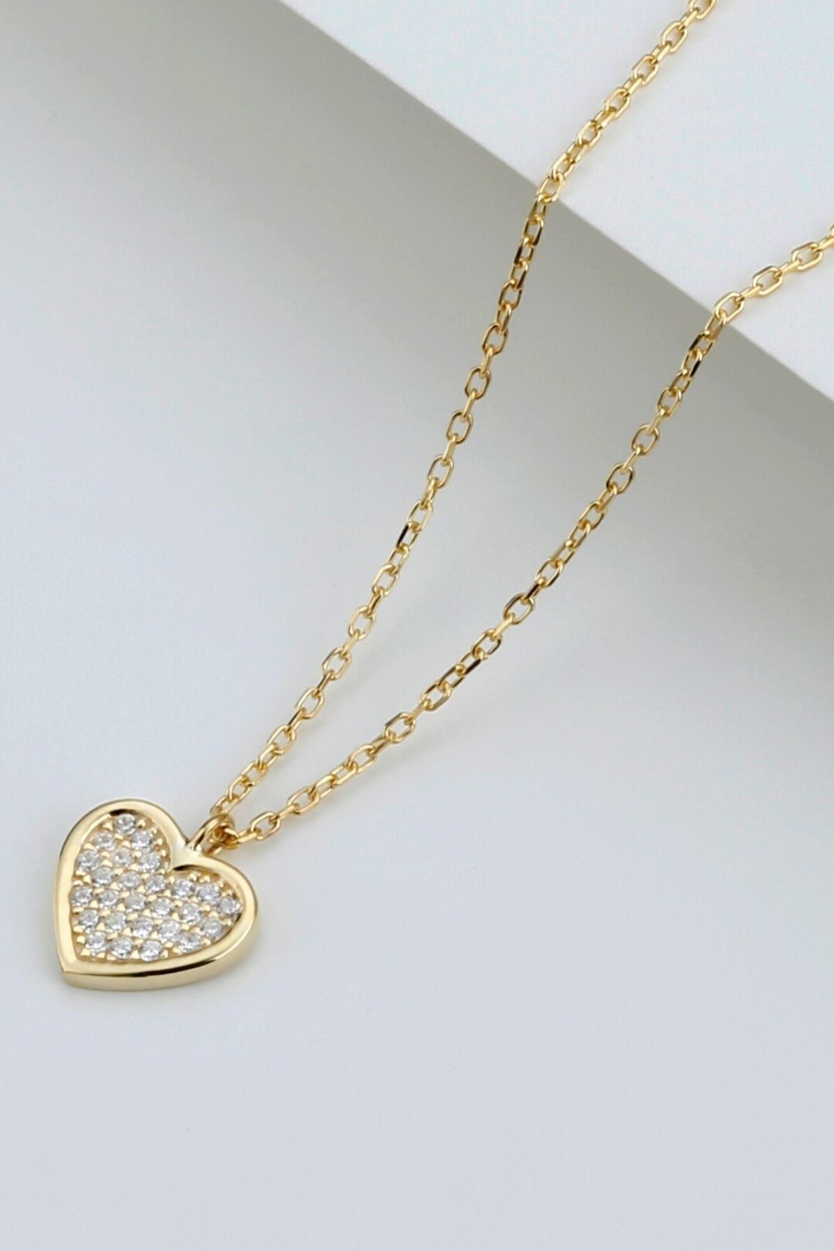 925 Ayar Zirkon Taşlı Kalp Gümüş Kolye