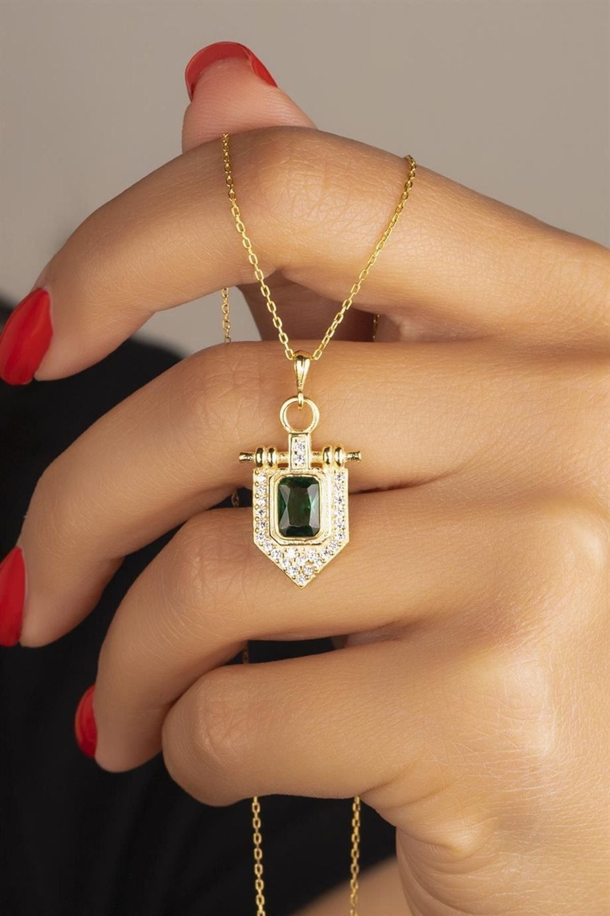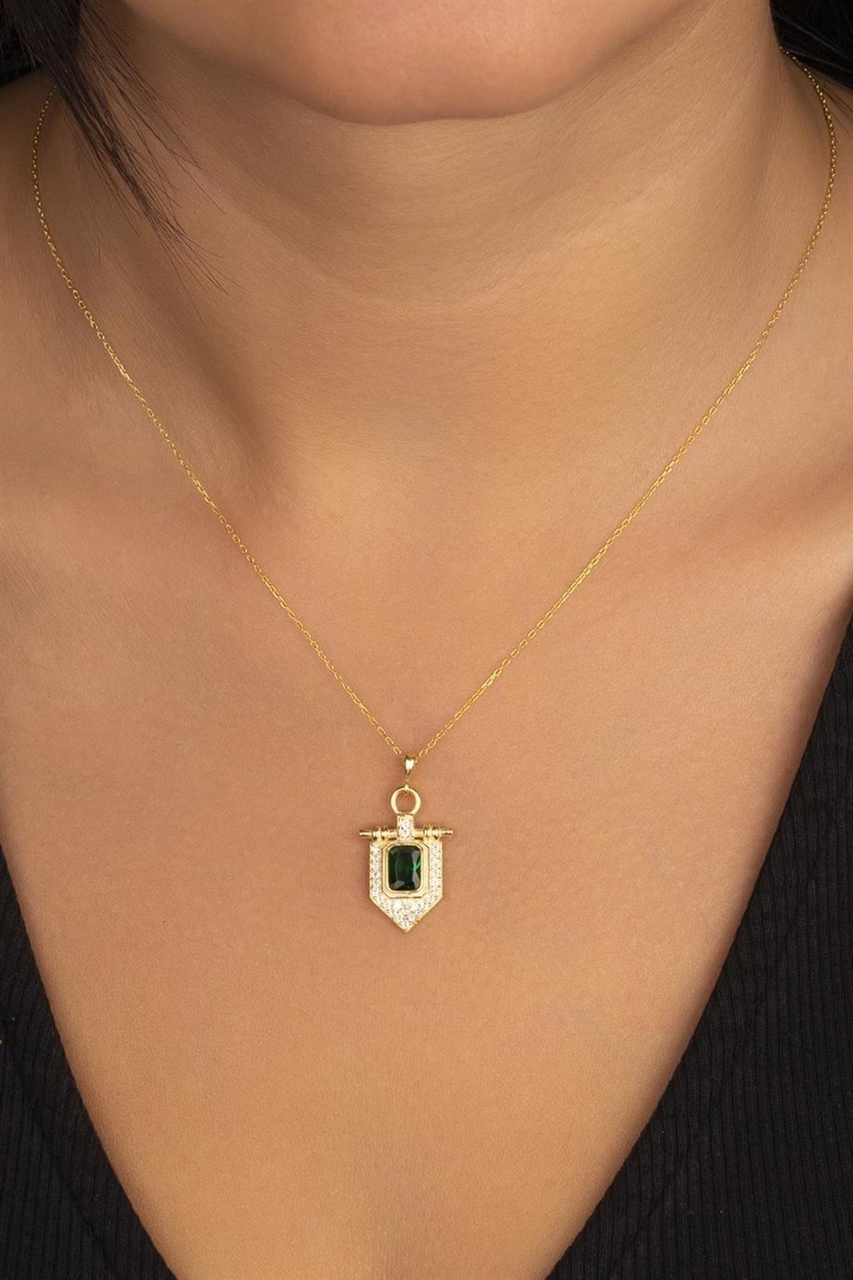 925 Ayar Zümrüt Baget Taşlı Gümüş Kolye