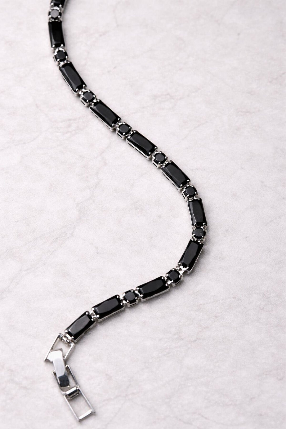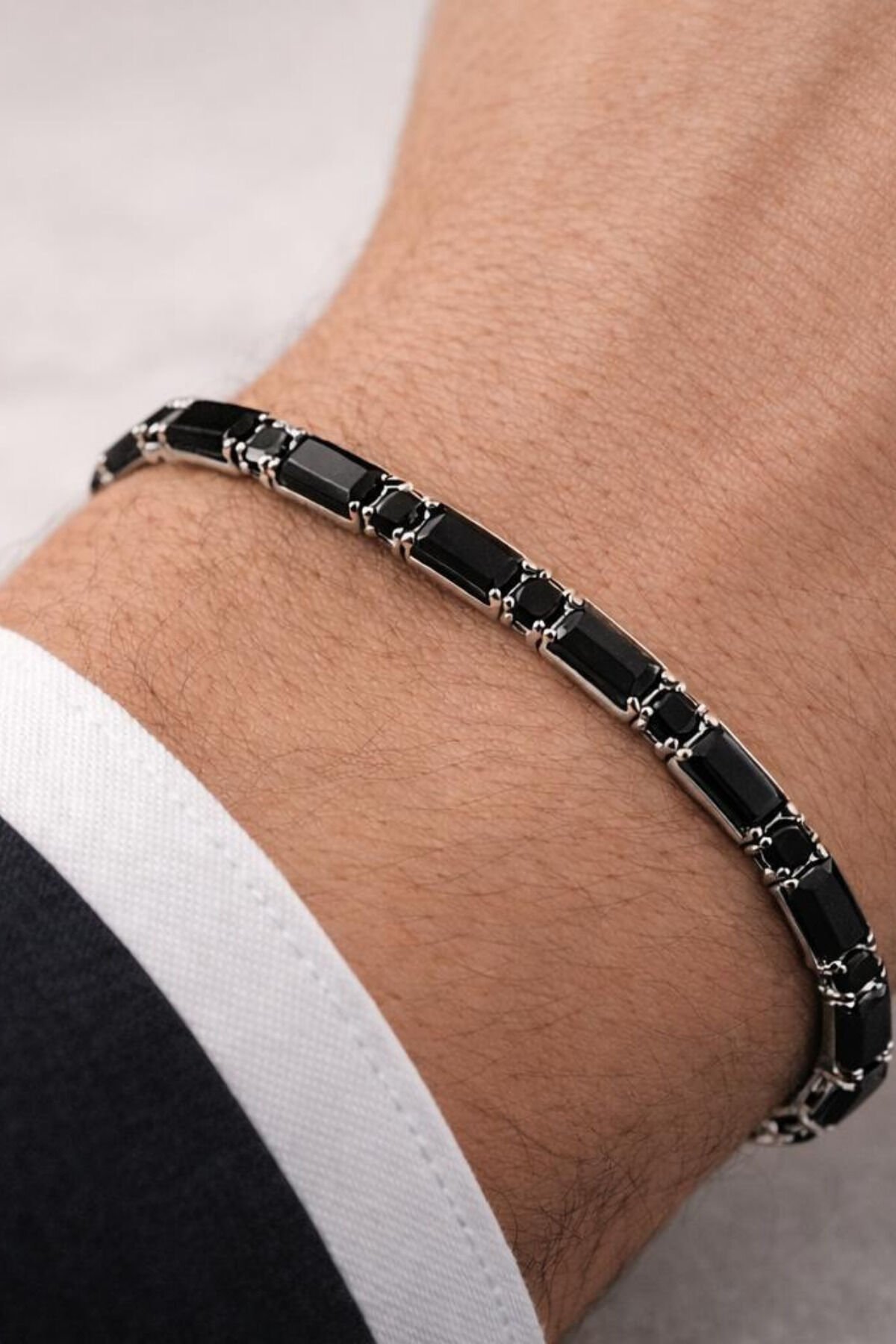 Siyah Baget Taşlı Çelik Erkek Bileklik